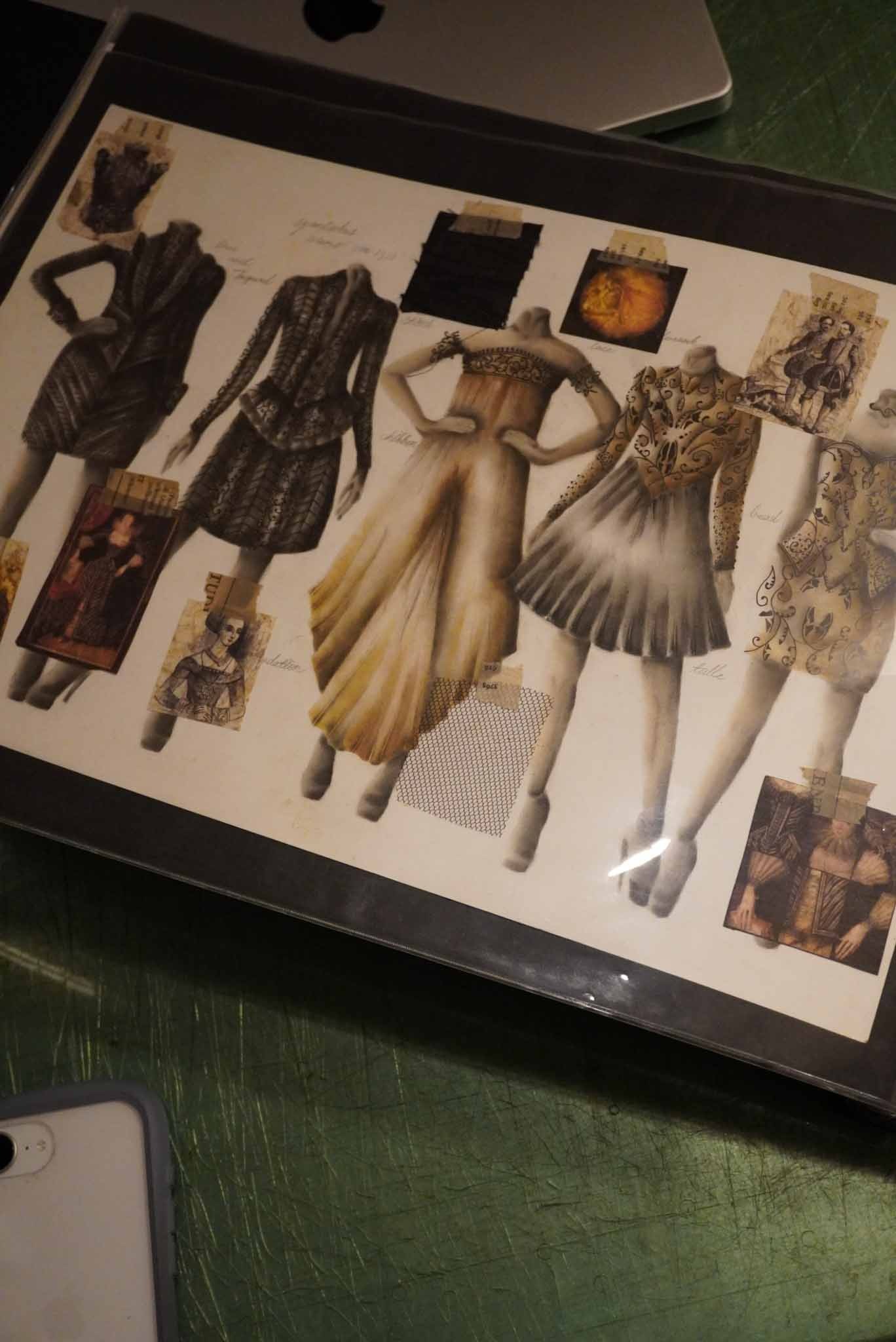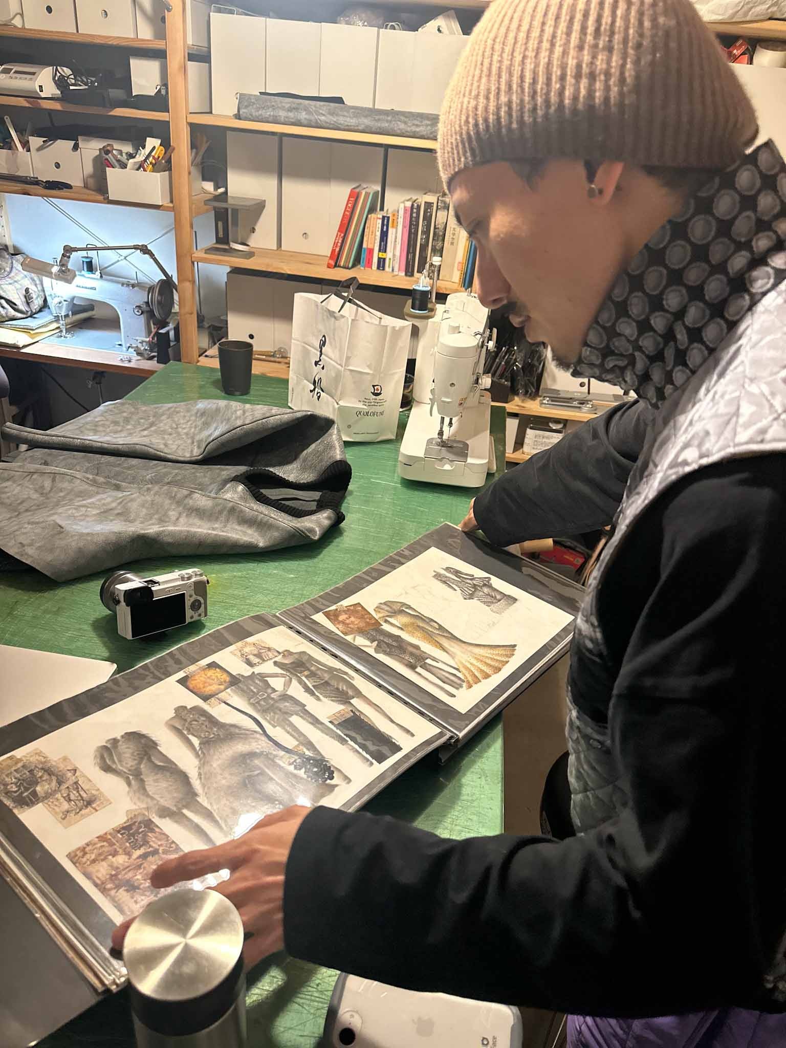 アトリエで阿部さんのコレクションのデザイン画をまとめた冊子を見せてもらいました。