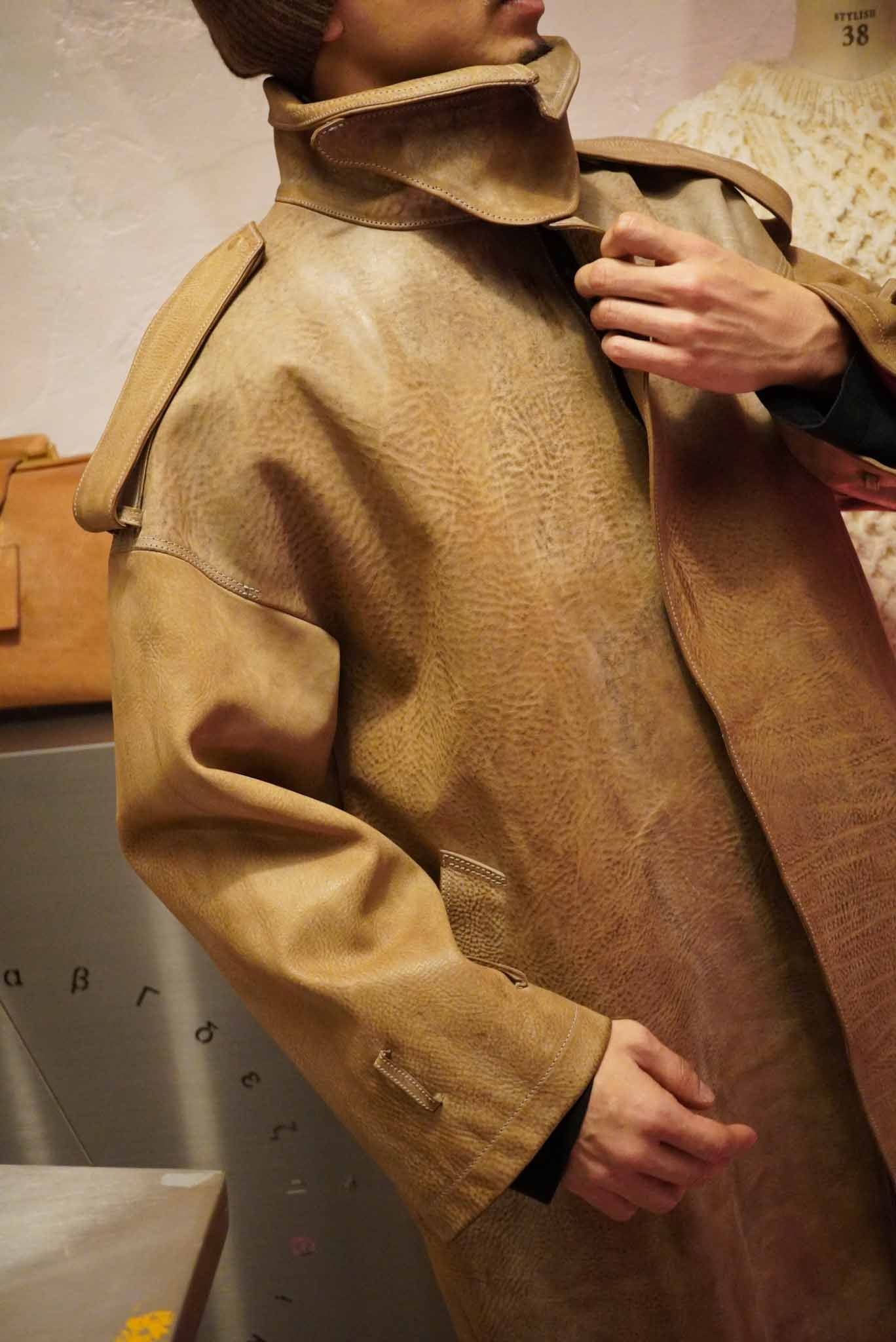 革の表情が大きく変わるこの作品は日常のアウターとしてはもちろん、アート作品としても愉しんでいただきたいそうです。