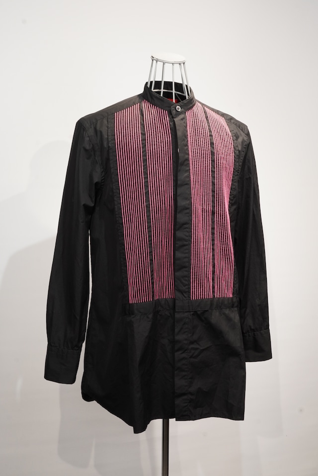 This ribbed T-shirt is tailored as a single piece, with the left and right fronts each extending to the opposite side of the neck and crossing each other. The deep cutouts in the front were developed by designer Matsushita with the intense heat of Japan in mind (for excellent ventilation). (Excellent breathability) The front fabric is layered enough so that there is no need to worry about showing skin, and it can be enjoyed by daring to layer it up. With a front pocket on the lower front, it is also highly functional. This big-size T-shirt is made with plenty of linen-rayon weak water-repellent washer fabric (made in Japan), and may no longer feel like a T-shirt, but more like a shirt.