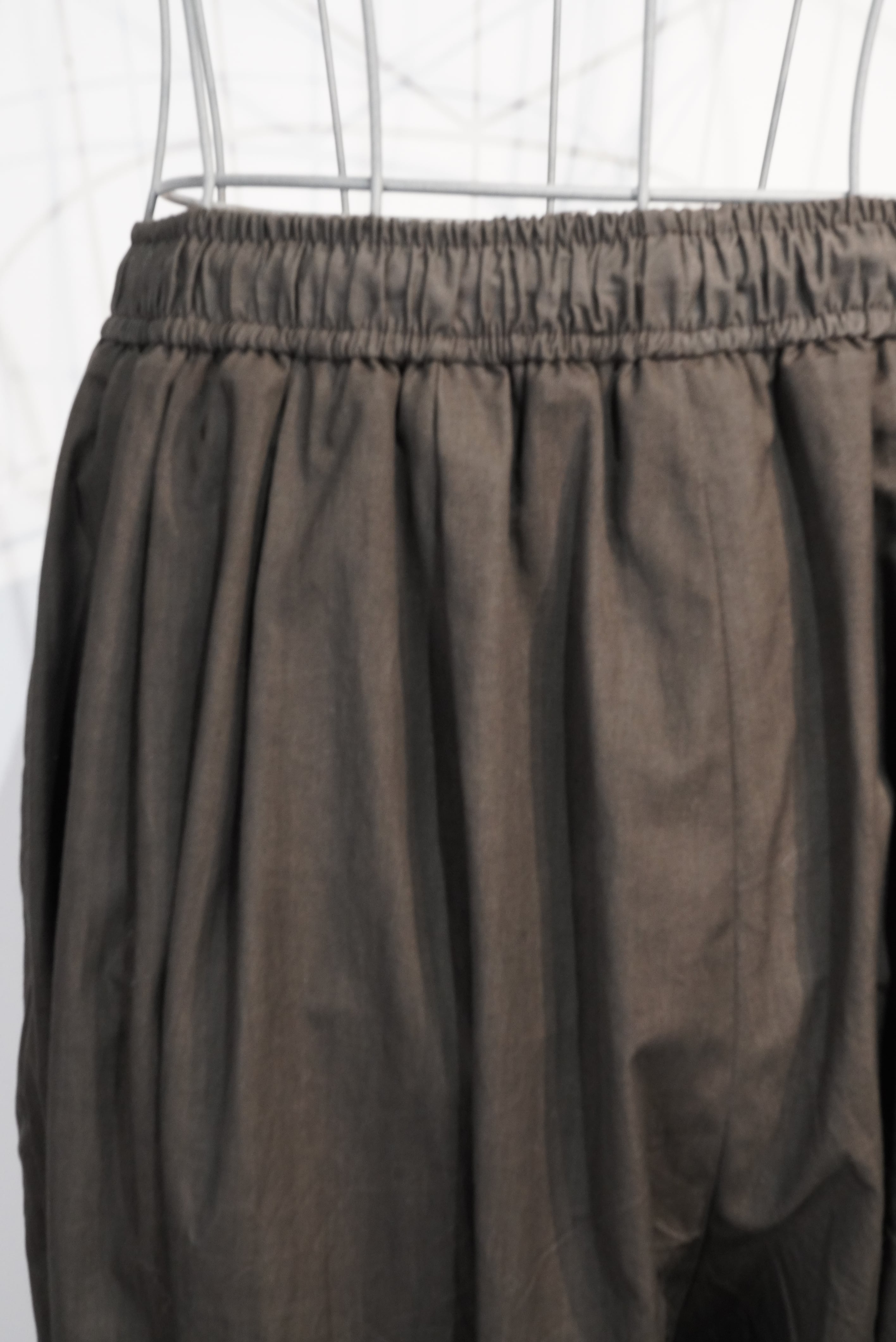HAVERSACKと言えば、パンツに数々の名作がありますが、中でも一つ挙げるなら、"ズアーブパンジ"は外せないアイテムではないでしょうか。プリーツとギャザーをふんだんに取り入れ、全体にボリューム感を出したHAVERSACKのズアーブパンツ。ウエストと裾はゴムシャーリング仕様になっており、裾の丈のアレンジができ、着こなしのバリエーションを楽しめる1本。ズアーブパンツとは、1830年当時フランスの植民地であった、北アフリ力の、主にアルジェリアやチュニジアの人たちによって編成フランス軍アルジェリア歩兵隊・ズアーブ兵が着用しいたことに由来するもの。機能的な動きやすさを含み、民族的な要素を含むバルーン型のデザインは個性が光ります。素材には水墨画の様な墨の陰影のある味わいが特徴の墨染ブロードを使用。共地を使用したスリーピングシャツとセットアップがオススメ。このセットアップをベースに、ジャケットやコートを合わせると着こなしの幅が広がりそうです。また季節を問わずに使用できるコットン素材です。