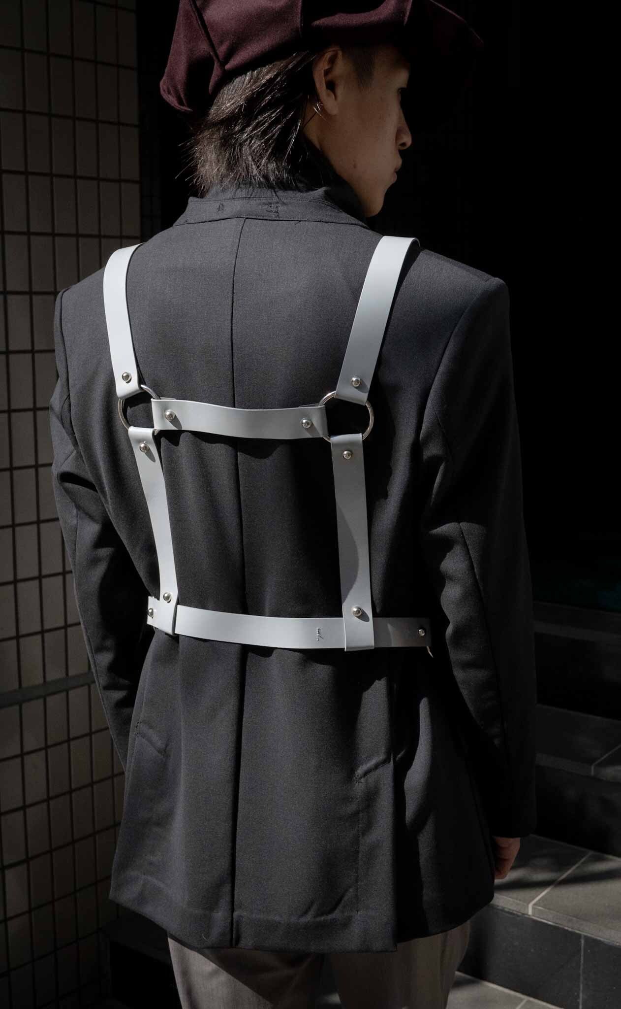 Harnesses are traditionally considered work items, such as harnesses, harnesses, and field work. However, many people associate them with hardcore SM equipment. In fashion, they accentuate the body line and add a touch of style. Wearing them not only brings freedom and comfort, but also binds and deprives the wearer of freedom. They are truly tools for expressing a rebellious spirit through clothing. (As in the context of punk) Designer Tokio was inspired by the style of Rei Kawakubo of COMME des GARÇONS, who wears "Zana Bayne," and incorporated the harness into the brand's signature item. While the color variation has been limited to black in recent years, two more colors, a softer gray and mint, have been added. In the photos posted, harnesses are added to different styles of jackets, T-shirts, and shirts. Looking at them this way, doesn't it seem like anyone could easily incorporate a harness? Actually, my encounter with Tokio began with a harness. I had purchased a vivid blue harness at a select shop a few years ago. A few years later, a friend introduced me to Tokio, and I learned that he was the designer of that harness. What's more, Tokio is the same generation as me. I felt a connection in many ways. That's why Tokio's harnesses are so special to me.