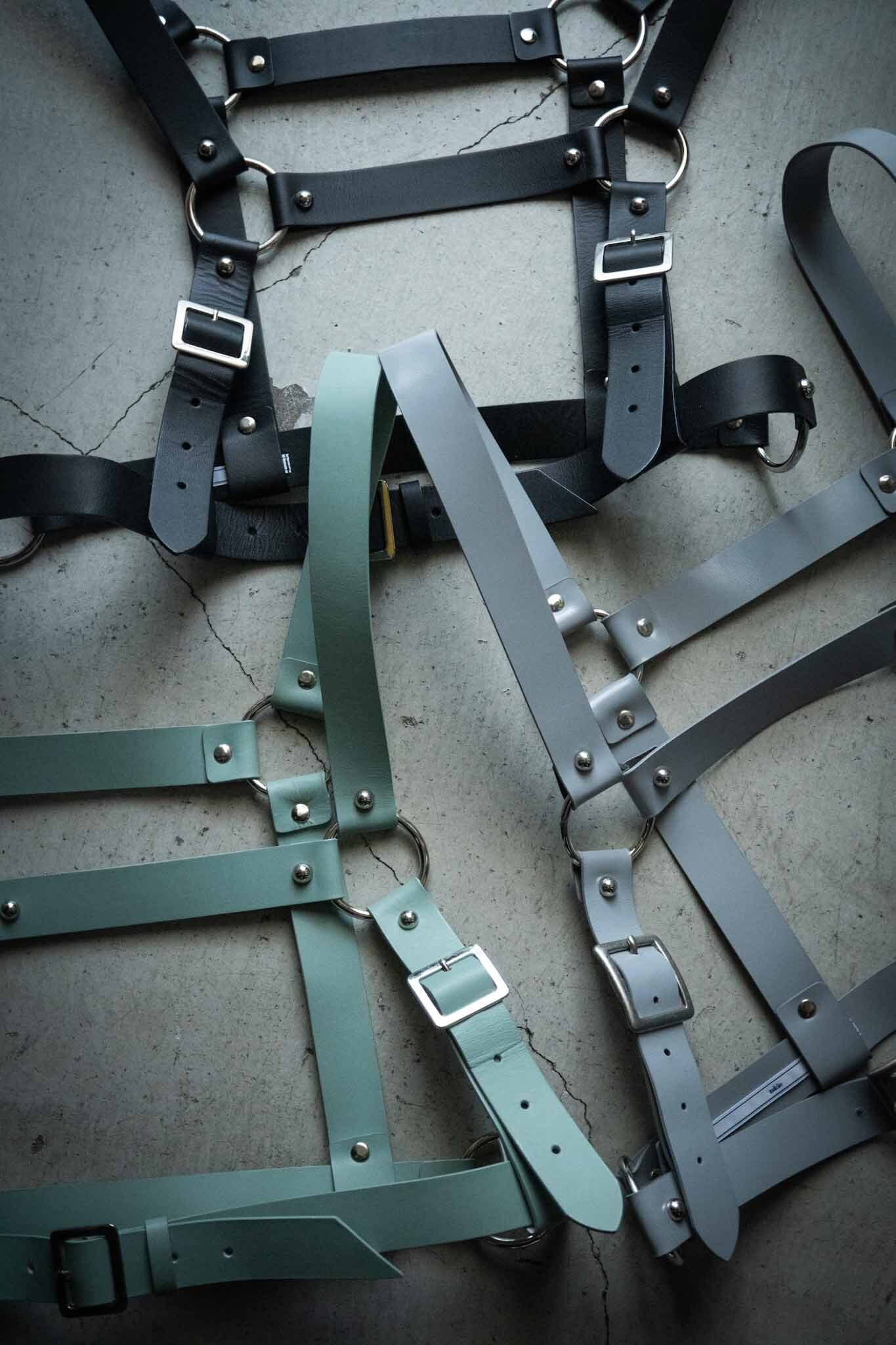 ハーネスは本来馬具や引き具、現場作業などに使われるワークアイテム。一方で多くの人が想像するのはハードコアなイメージのSM道具。ファッションとしては、ボディラインを強調したり、スタイルにスパイスを加えてくれるアイテム。着用することで自由や心地よさを得るとは反対に、縛られて、自由を奪う。まさに身体を張って、反骨精神を服で表現する道具なわけです。(パンクの文脈にあるように)デザイナーのトキオ氏は"Zana Bayne"を着用するCOMME des GARÇONS川久保玲のスタイルからハーネススタイルにインスパイアを受け、ブランドを象徴するアイテムにハーネスを取り入れたそう。近年はカラーバリエーションはブラックだけでしたが、優しい雰囲気のグレーとミントの2色も追加で作って頂きました。投稿写真ではジャケット、Tシャツ、シャツのそれぞれ異なるスタイルにハーネスを加えてみました。こう見ると、誰でも簡単にハーネス取り入れそうな気がしませんか?実は私とtokioさんとの出会いはハーネスから始まっており、私が某セレクトショップでビビットなブルーのハーネスを数年前に購入していたんです。それから数年後、ご縁があって友人を介してtokioを紹介して頂きそのハーネスのデザイナーさんだと知りました。しかもtokioさんは私と同世代。色々と繋がりを感じました。なので私にとってtokioさんのハーネスは思い入れが深いのです。