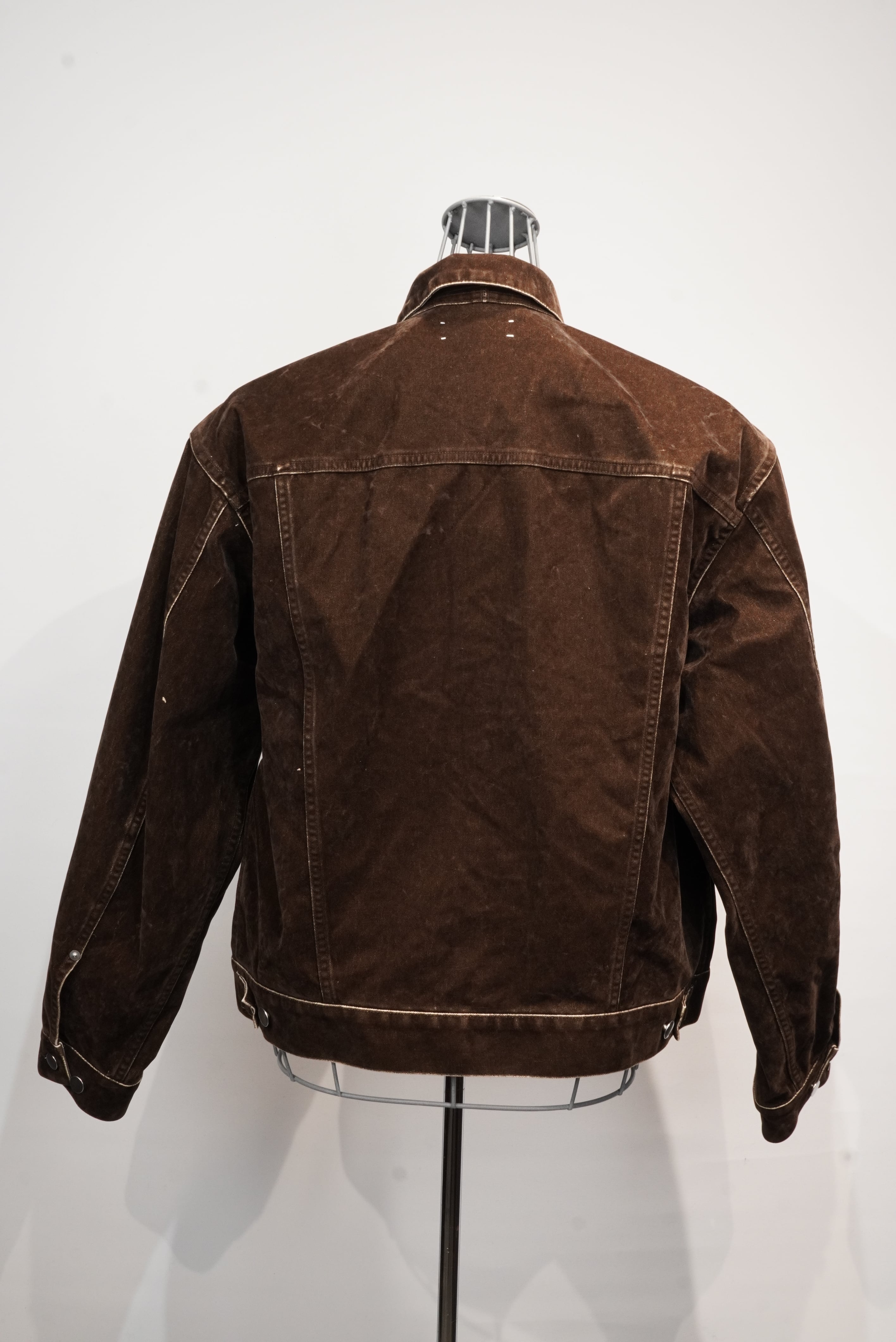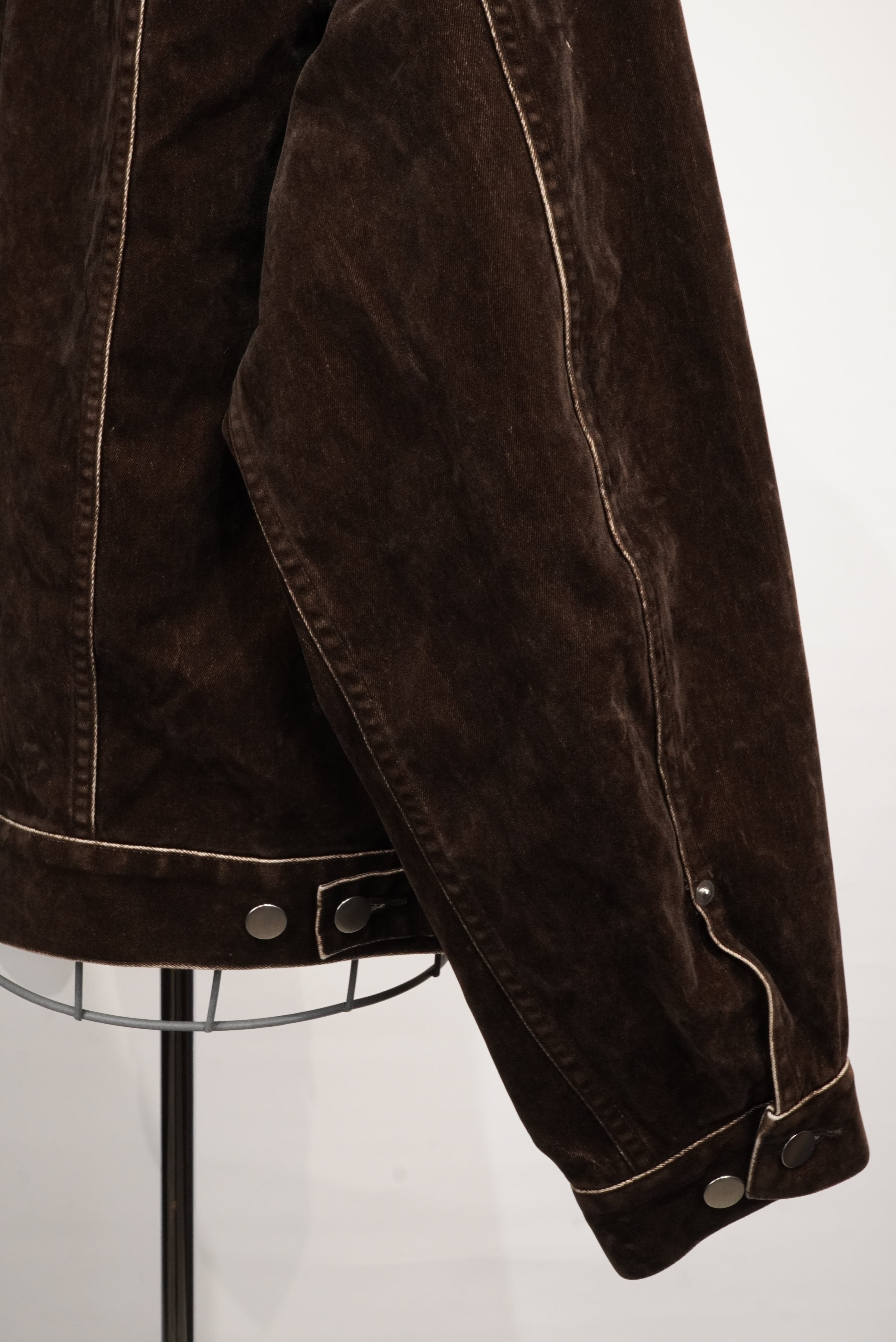 REVERBERATE presents the flocked jacket. This jacket has a beautiful silhouette that is slightly more dressy than casual. The pattern allows for a lot of room, but the silhouette appears compact when worn. The fabric is fully flocked and printed. It is characterized by a vintage-like finish that develops through washing.