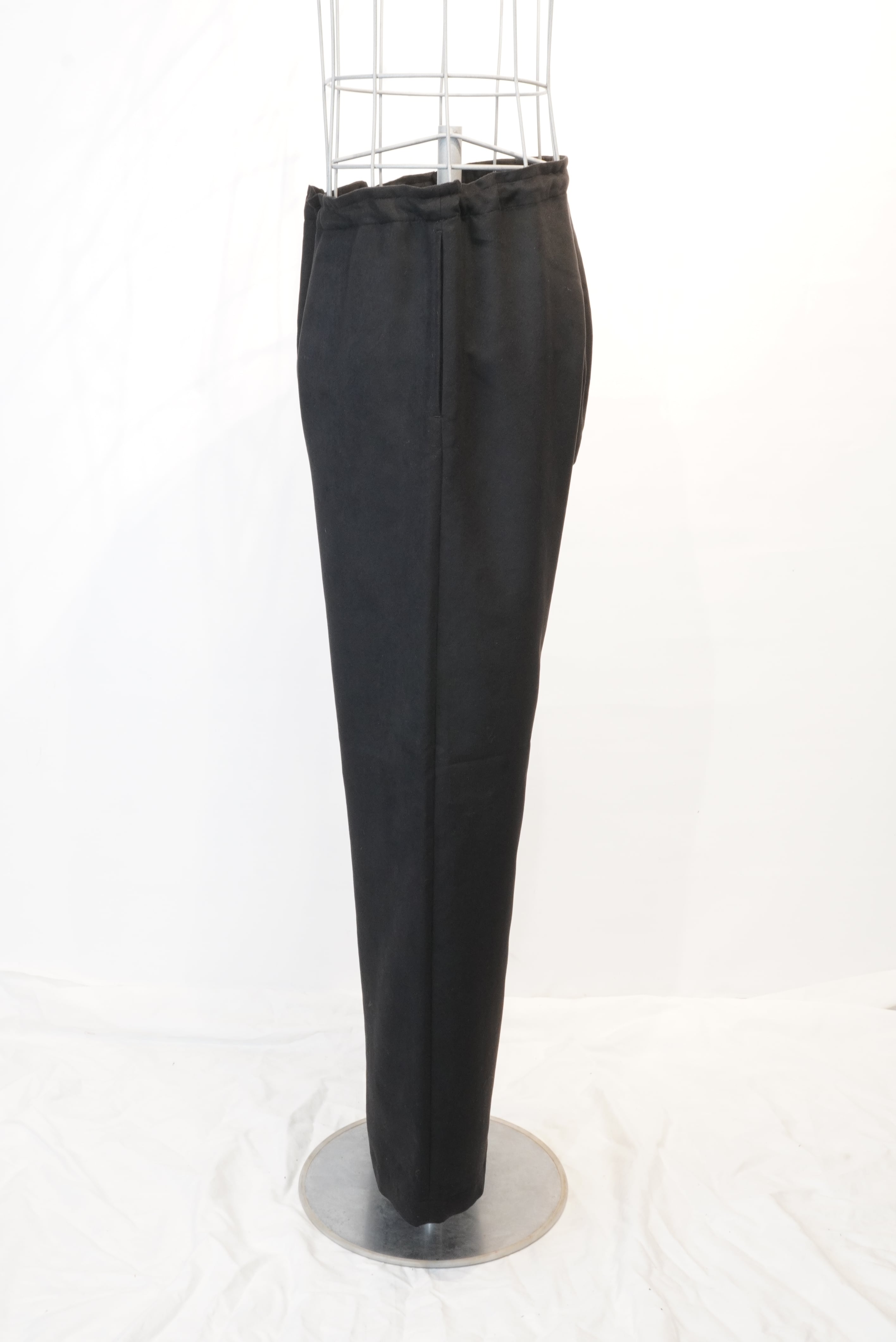 フェイクスエードのサルエルバギーパンツ。日本製のフェイクスエードを使用。ウエストの紐でサイズが調整できるイージーパンツ仕様のアイテムです。サイドポケットが付き。シンプルながら生地の重厚感を感じることのできます。軽量でとても履き心地の良い1枚です。