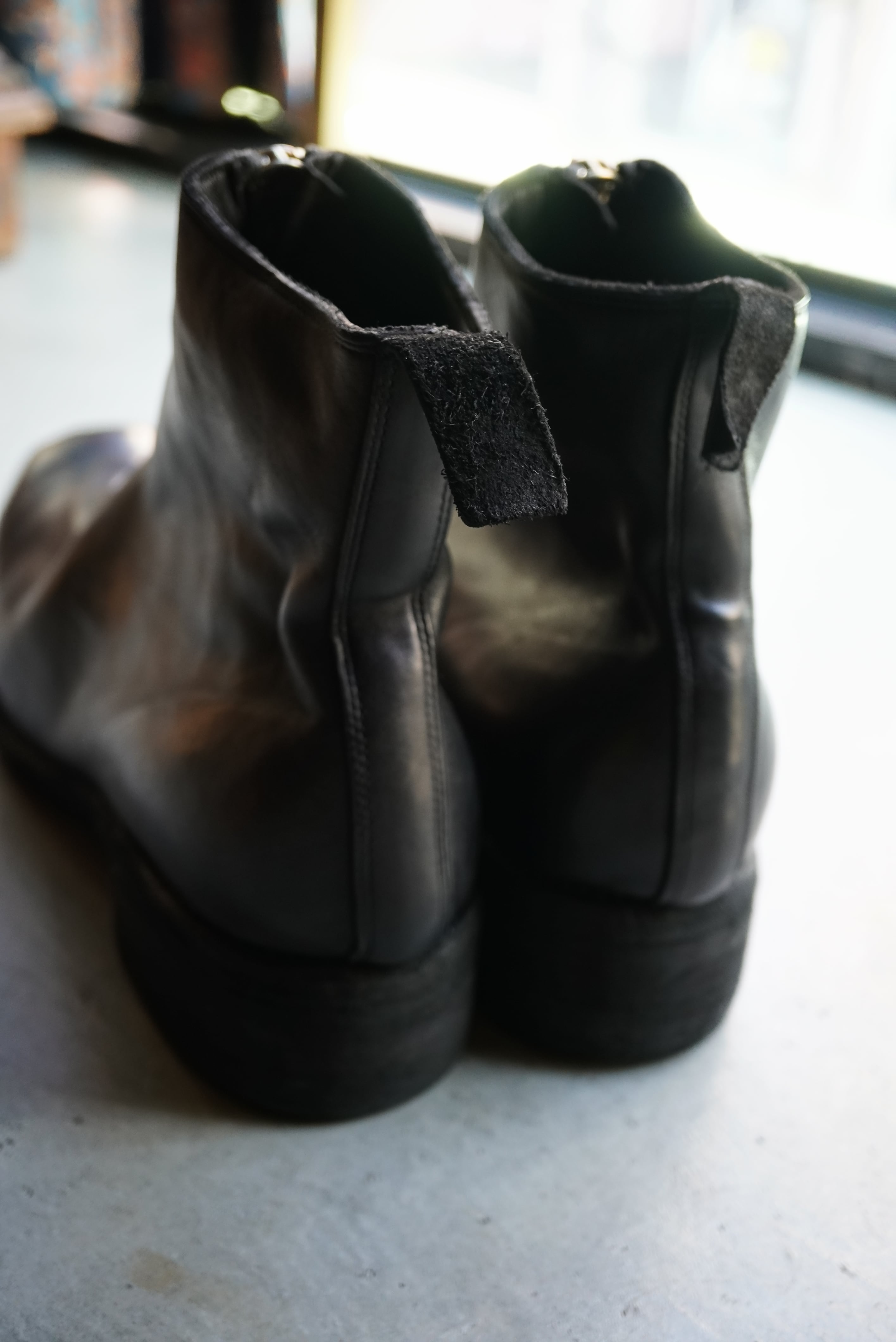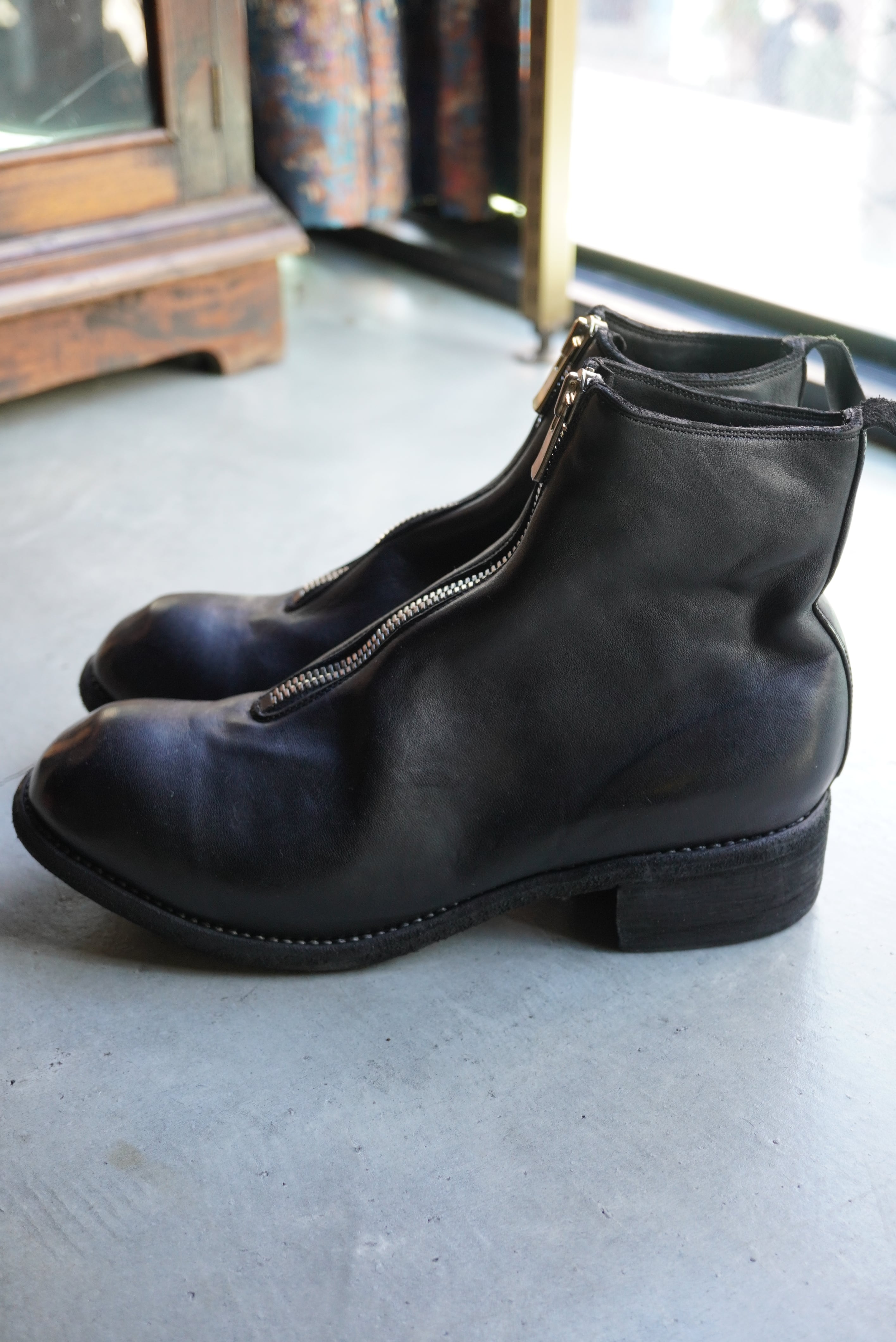 独特なトウのフォルムやジップパーツなど、GUIDI(グイディ)の象徴的なデザインで世界的に支持を博すブーツPL 1。アッパー部分は、イタリアのトスカーナ地方で100年以上伝統が続くタンナーによるレザーが使用され、オイルを多く含む革は履き込むほどに表れる光沢や経年変化も魅力的です。履きやすさにも定評のあるGUIDI。少し高めにデザインされたヒールはコルクとレザーが内蔵され、歩くほどに足の形を記憶し、より高いフィッティングを実現します。その履き心地は所有者だけが味わうことができる唯一の特権。ソールを張り替えながら何年でも使用できる、一生物の靴と断言できます。仕様はグッドイヤーウェルト製法/ベジタブルタンニンなめしをしています。また付属のラバーパーツをソールに張ることができます。