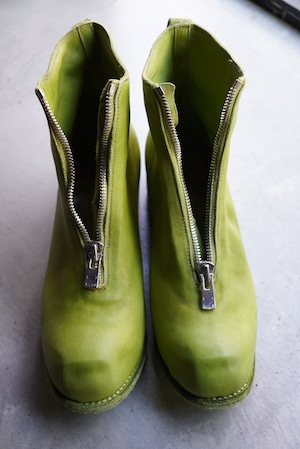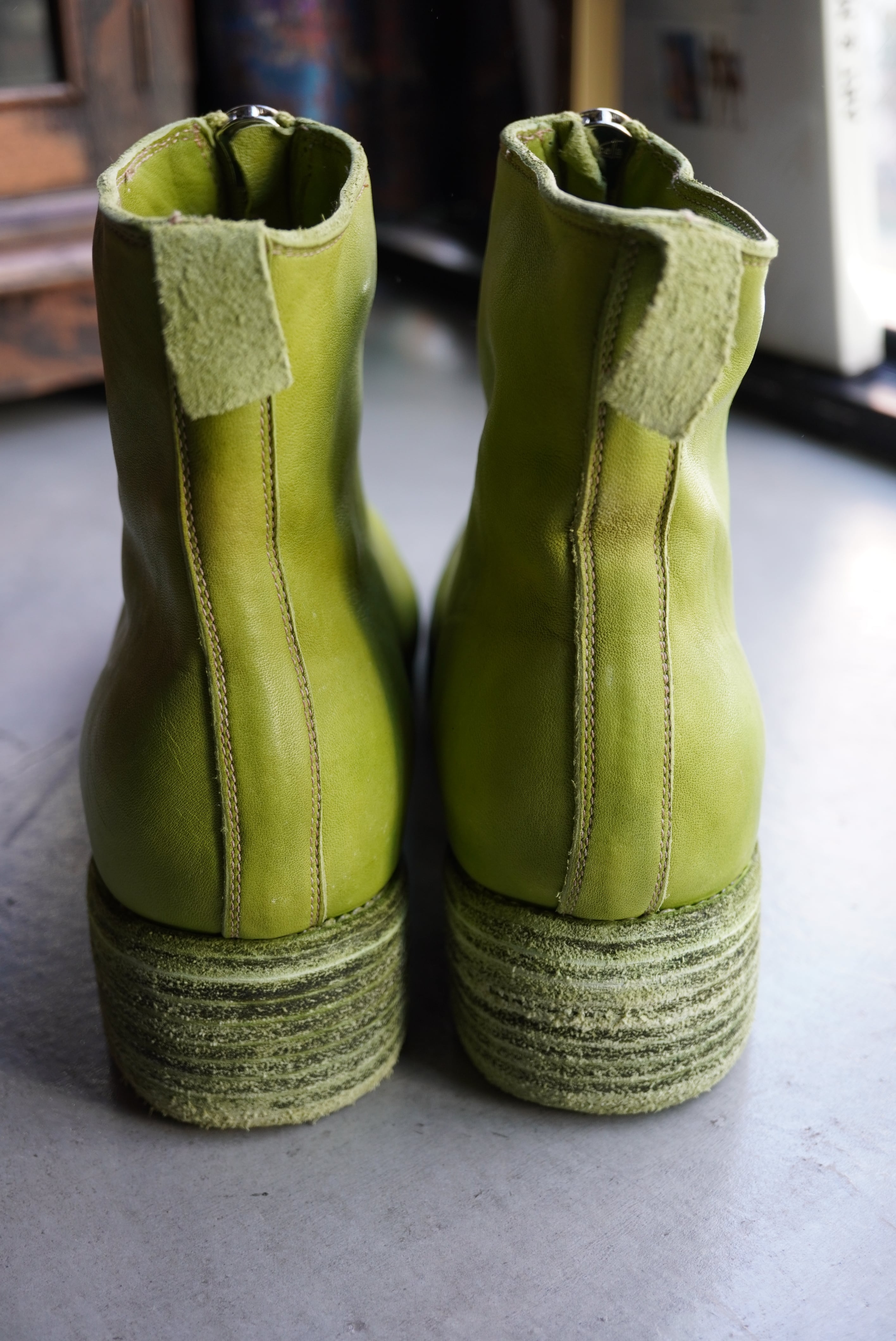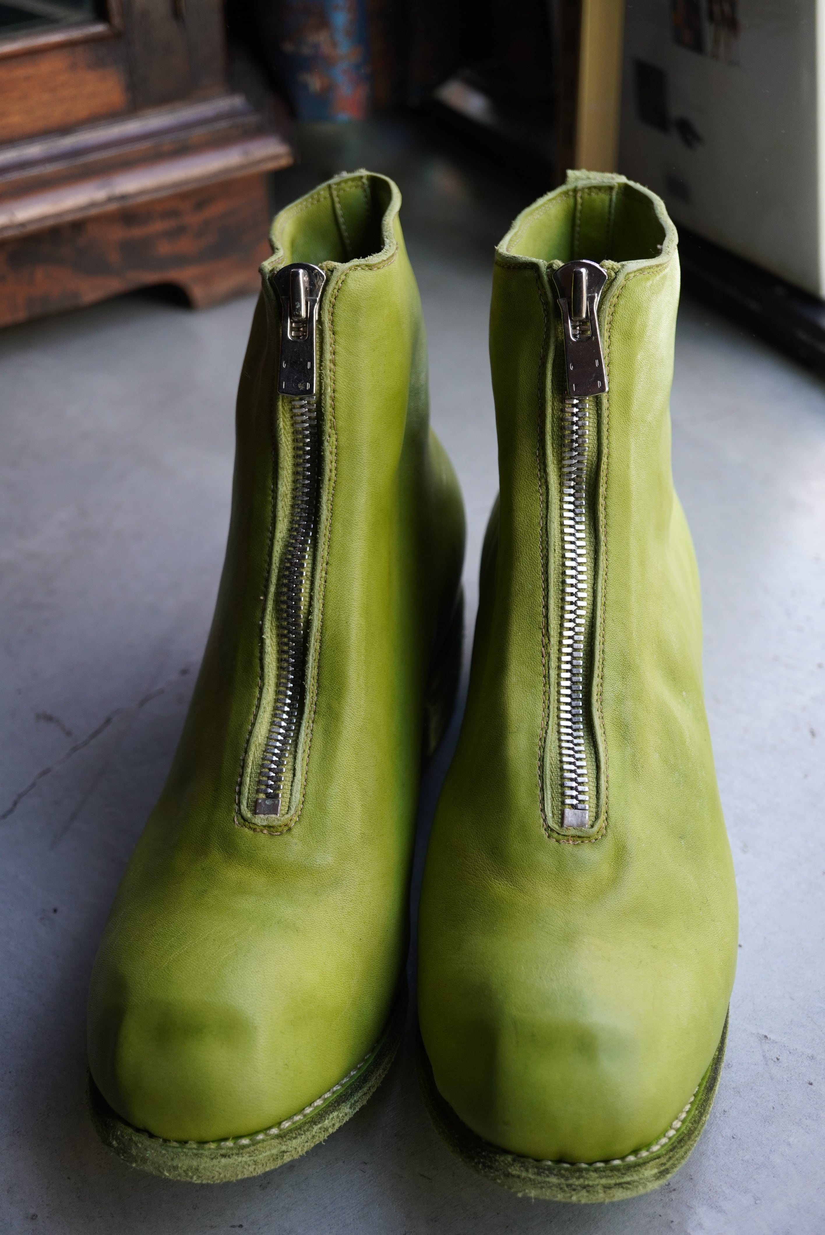 独特なトウのフォルムやジップパーツなど、GUIDI(グイディ)の象徴的なデザインで世界的に支持を博すブーツPL 1。アッパー部分は、イタリアのトスカーナ地方で100年以上伝統が続くタンナーによるレザーが使用され、オイルを多く含む革は履き込むほどに表れる光沢や経年変化も魅力的です。履きやすさにも定評のあるGUIDI。少し高めにデザインされたヒールはコルクとレザーが内蔵され、歩くほどに足の形を記憶し、より高いフィッティングを実現します。その履き心地は所有者だけが味わうことができる唯一の特権。ソールを張り替えながら何年でも使用できる、一生物の靴と断言できます。仕様はグッドイヤーウェルト製法/ベジタブルタンニンなめしをしています。また付属のラバーパーツをソールに張ることができます。