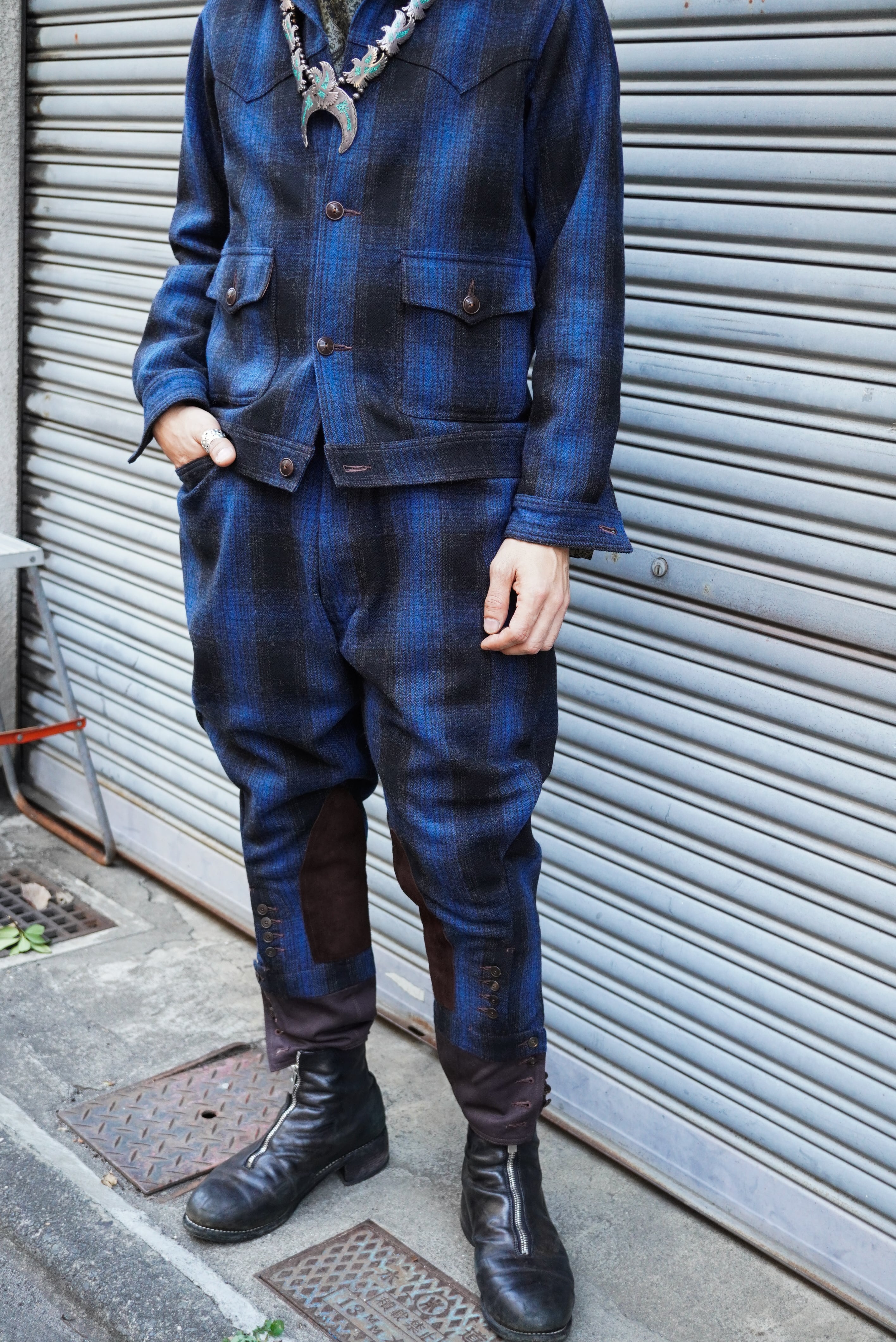 ADJUSTABLE COSTUME / OMBRE CHECK MELTON WESTERN SHORT JACKET