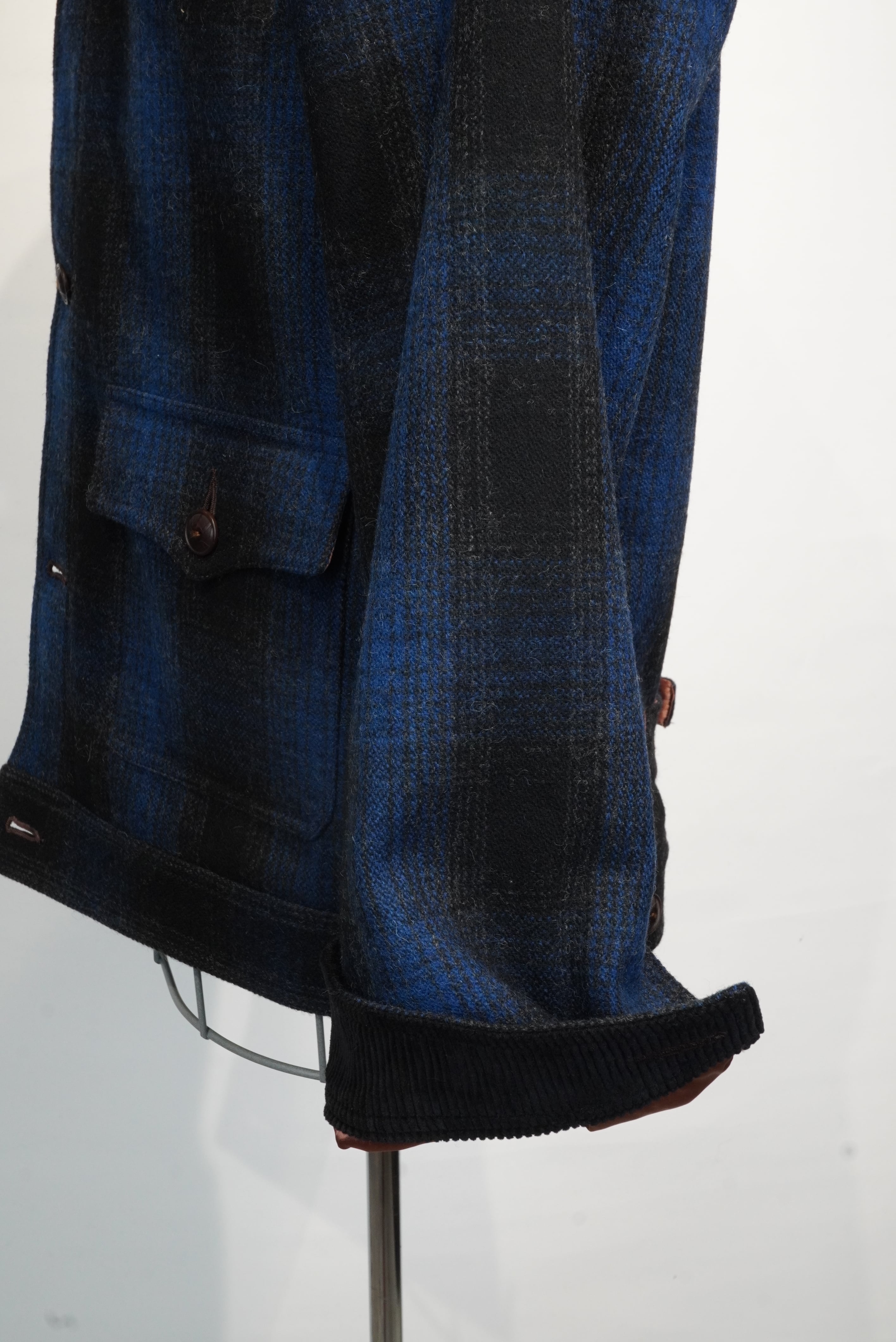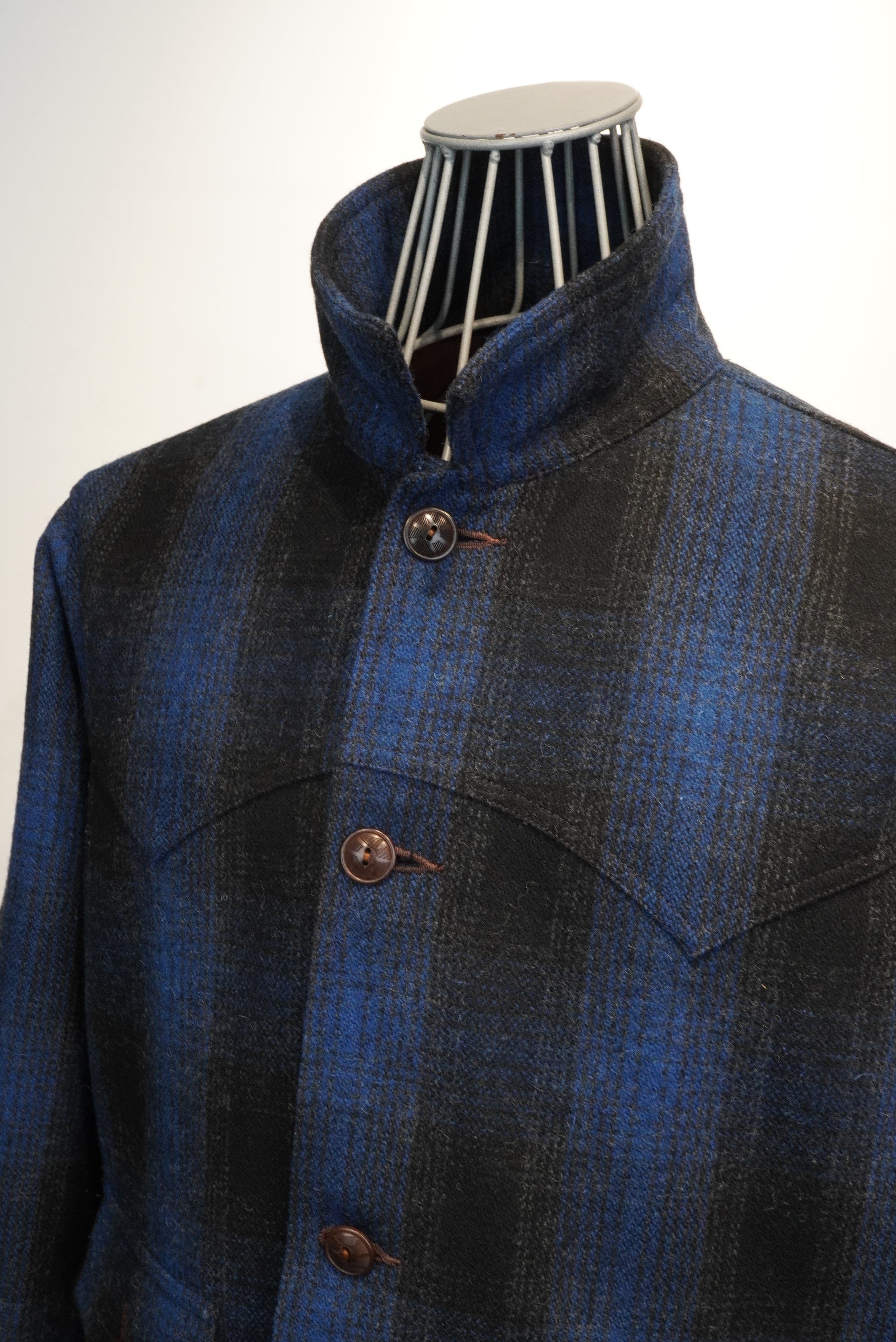 ウエスタンを彷彿させるジャケット。しっかりと打ち込んだ地厚なメルトンは、強いコシと頑丈さを兼ね備えておりアジャスタブルコスチュームらしい上質なランチウエアに仕上がっています。