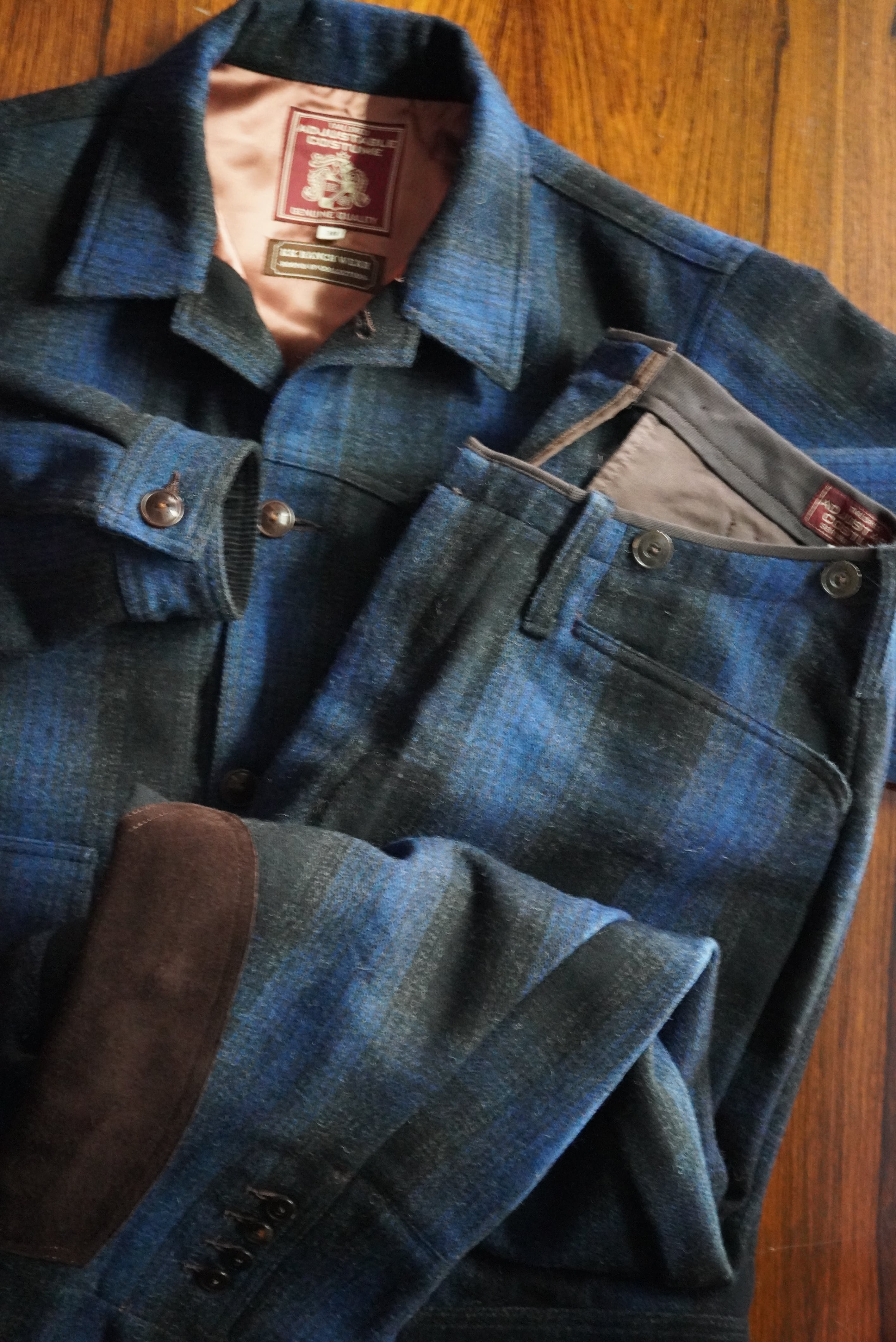 ウエスタンを彷彿させるジャケット。しっかりと打ち込んだ地厚なメルトンは、強いコシと頑丈さを兼ね備えておりアジャスタブルコスチュームらしい上質なランチウエアに仕上がっています。