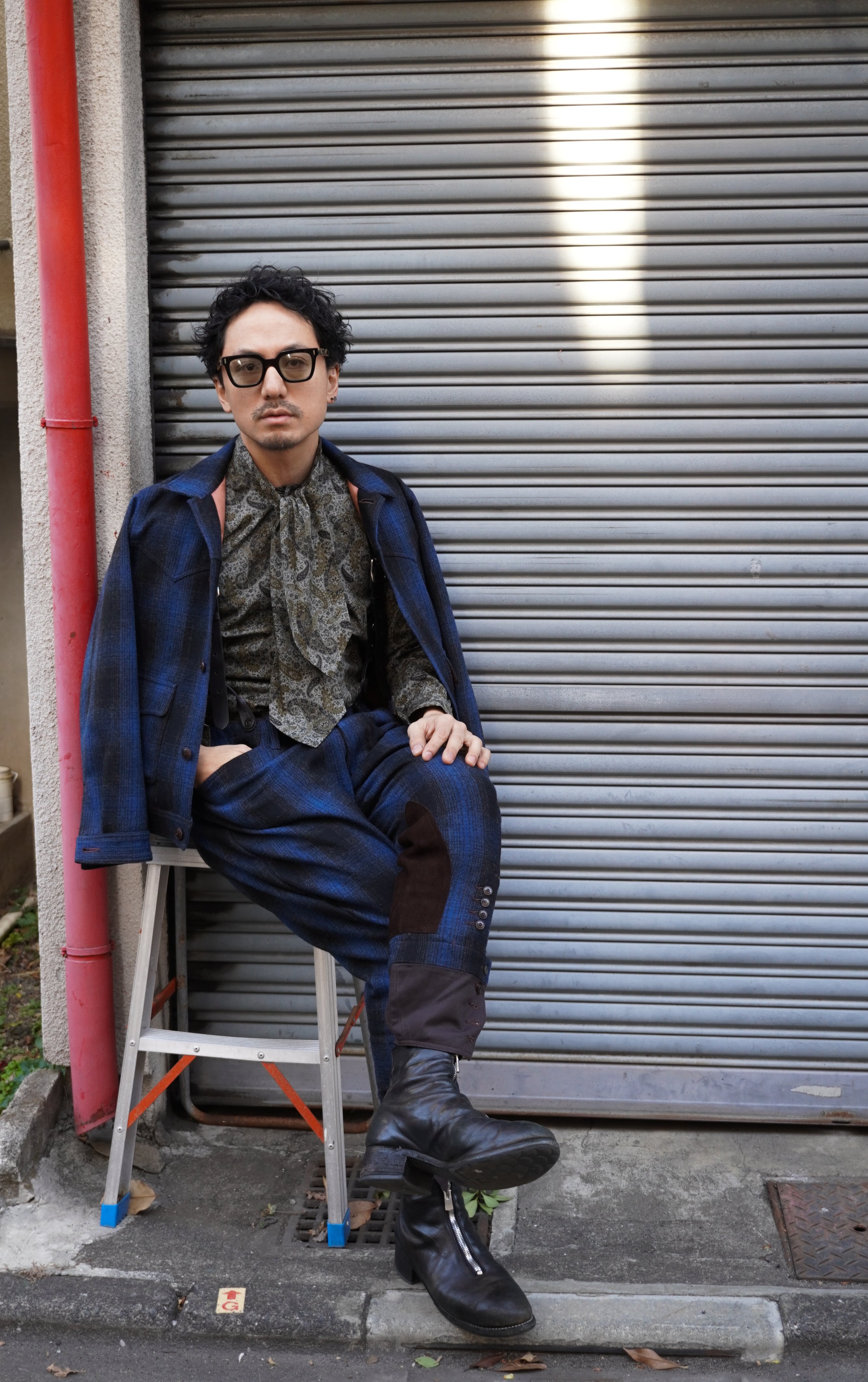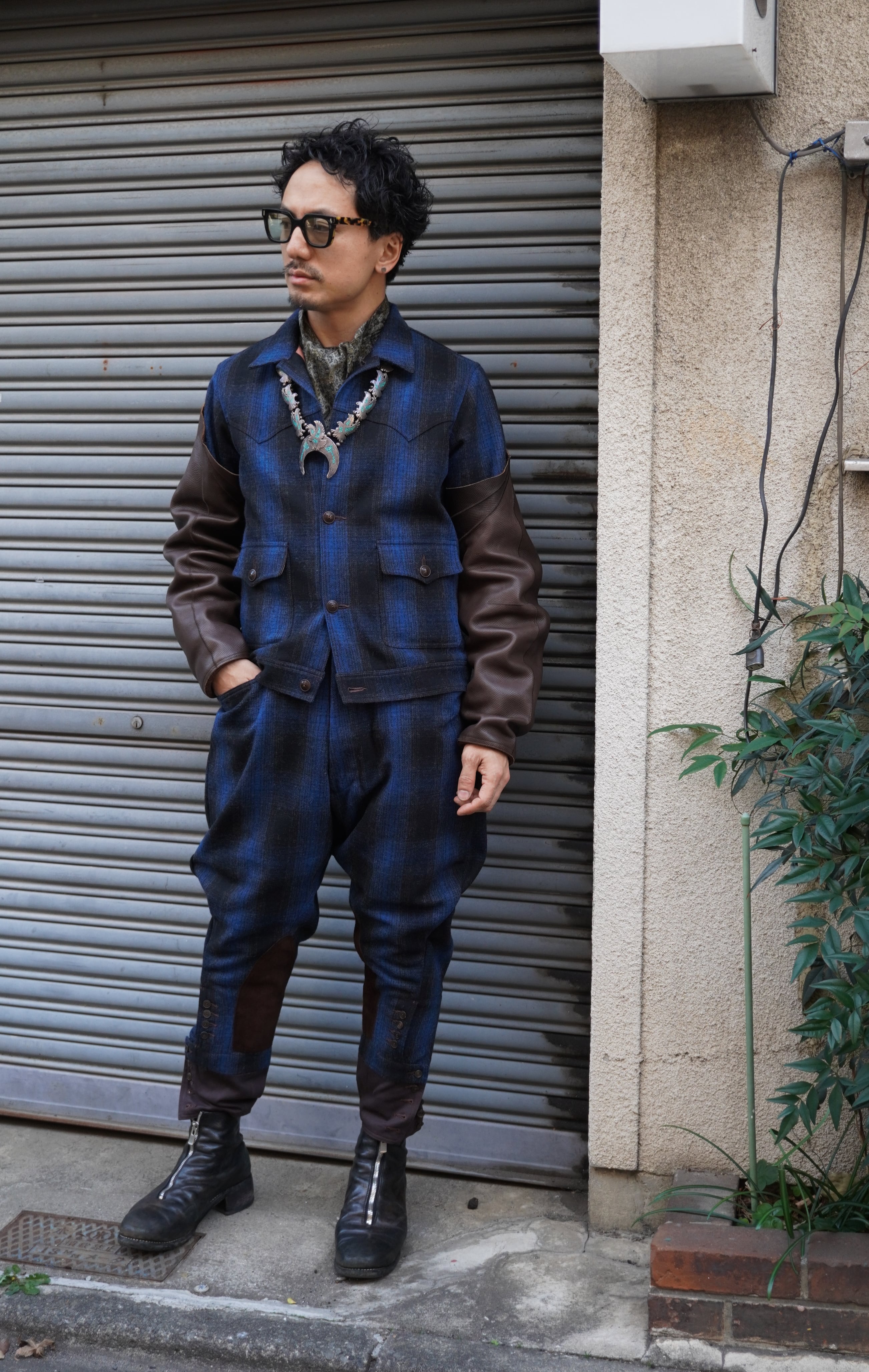 ADJUSTABLE COSTUME / OMBRE CHECK MELTON WESTERN SHORT JACKET