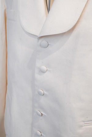 Inspired by vintage servant jackets, vintage lovers from the 1920s to 1940s may have seen them before. Servant jackets were worn by servants at the time. They feature a distinctive vest-like design with sleeves, and their short length ensures they don't get in the way while working, reflecting their functionality. When designing A BLUE CONCERT clothing, we imagine what kind of person would wear the clothes in what place and in what situation. This time, we took the opposite approach, creating a jacket that was worn by someone in that place and situation back then, using A BLUE CONCERT's signature 6.5oz denim and incorporating A BLUE CONCERT's iconic split raglan. Most vintage servant jackets have different fabrics between the body and sleeves, making them difficult to wear as everyday wear. However, A BLUE CONCERT's jackets are finished in a single color, making them more versatile for everyday wear. At the time, jackets were likely designed with a subconscious emphasis on functionality, and A BLUE CONCERT has named them the "bellboy jacket."