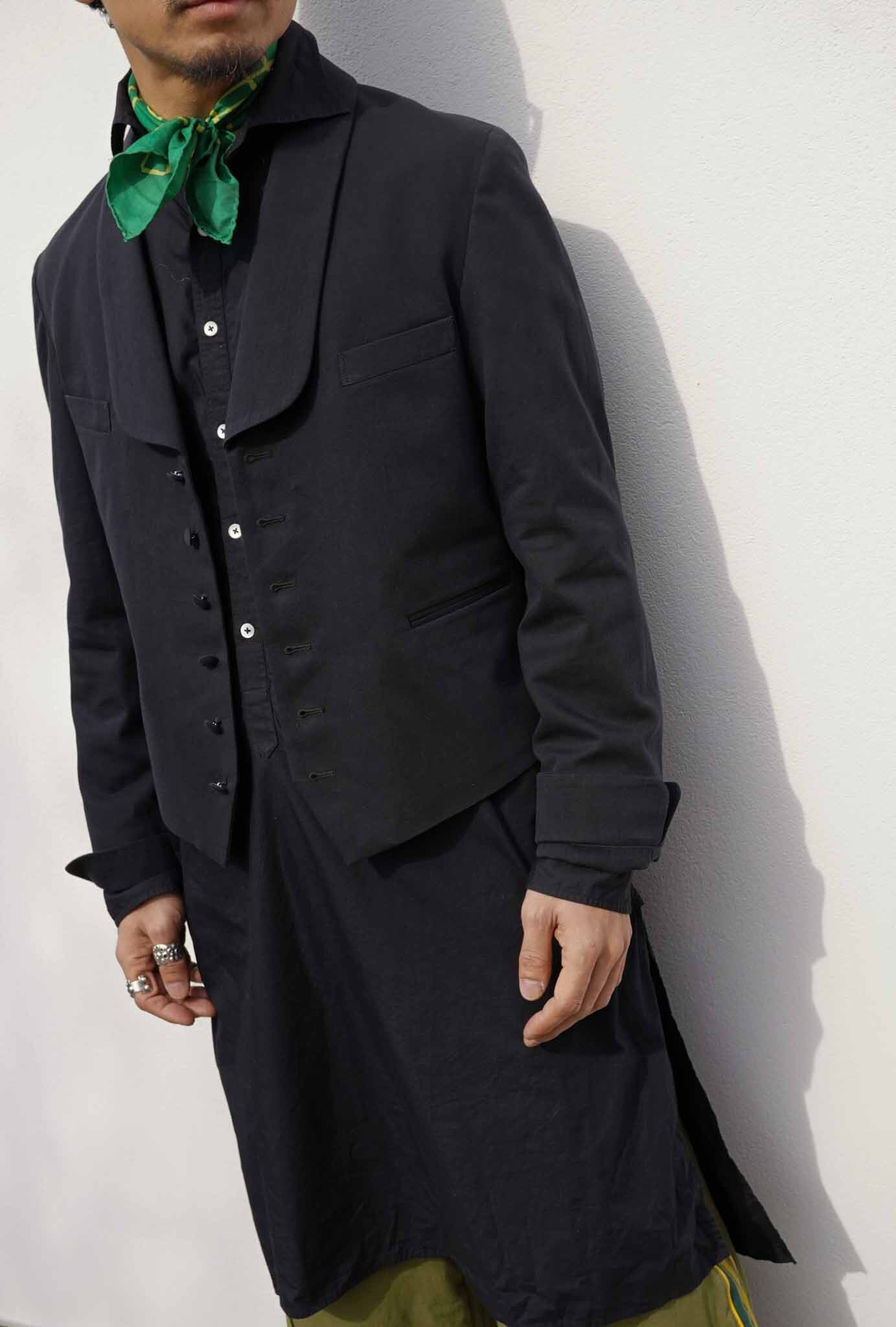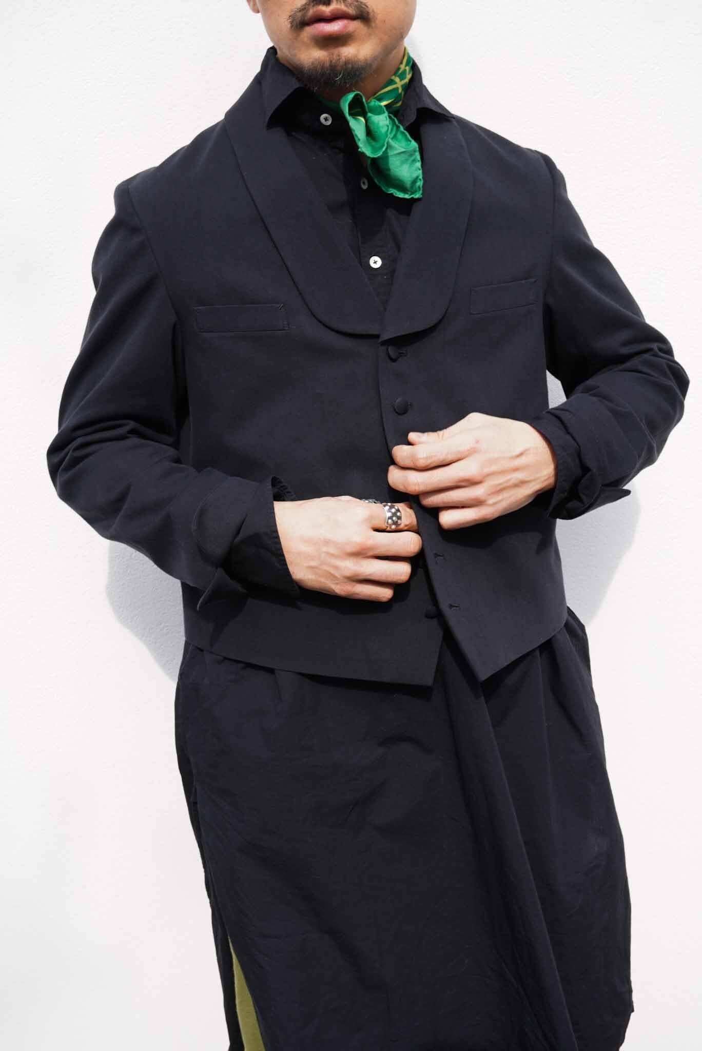 Inspired by vintage servant jackets, vintage lovers from the 1920s to 1940s may have seen them before. Servant jackets were worn by servants at the time. They feature a distinctive vest-like design with sleeves, and their short length ensures they don't get in the way while working, reflecting their functionality. When designing A BLUE CONCERT clothing, we imagine what kind of person would wear the clothes in what place and in what situation. This time, we took the opposite approach, creating a jacket that was worn by someone in that place and situation back then, using A BLUE CONCERT's signature 6.5oz denim and incorporating A BLUE CONCERT's iconic split raglan. Most vintage servant jackets have different fabrics between the body and sleeves, making them difficult to wear as everyday wear. However, A BLUE CONCERT's jackets are finished in a single color, making them more versatile for everyday wear. At the time, jackets were likely designed with a subconscious emphasis on functionality, and A BLUE CONCERT has named them the "bellboy jacket."