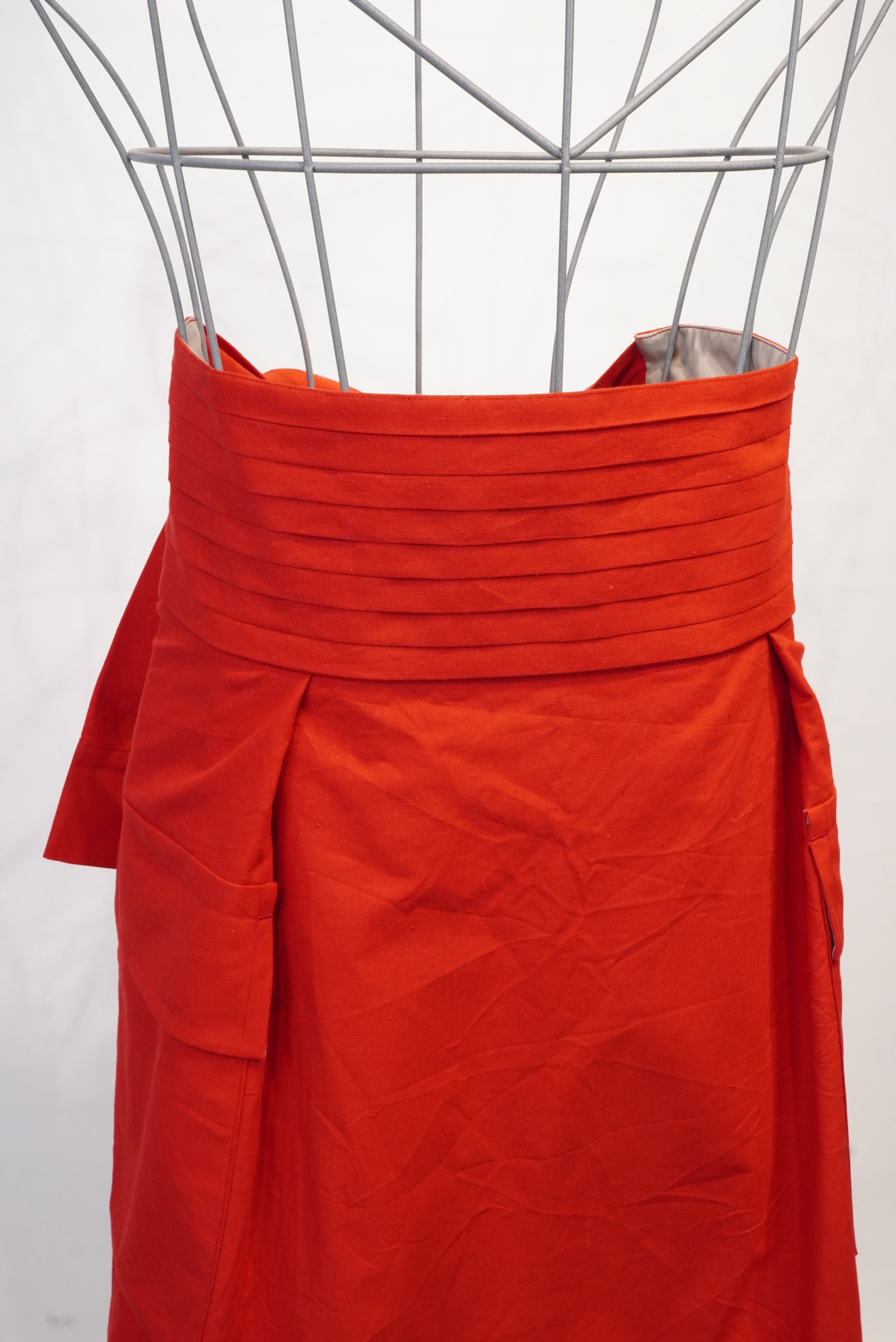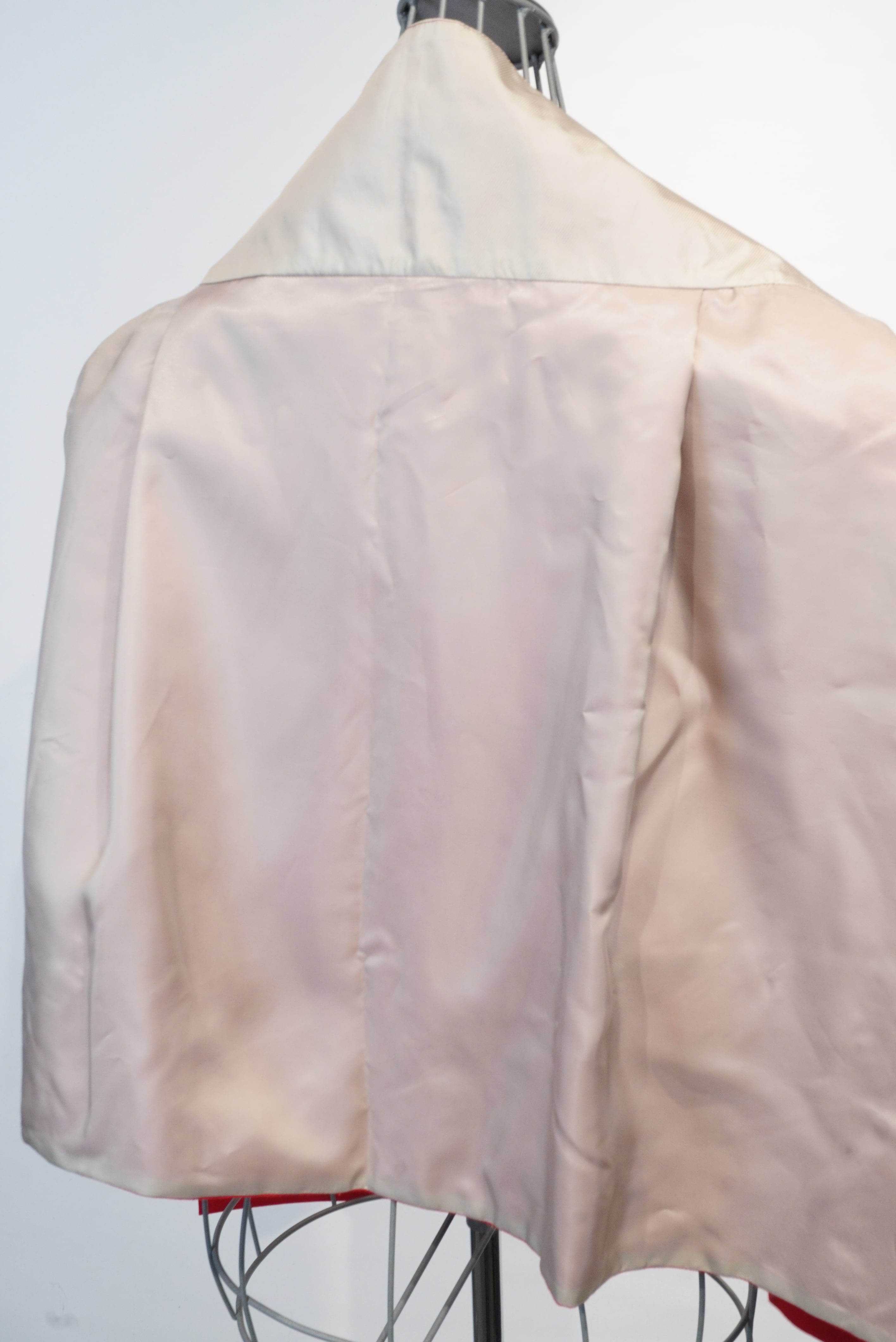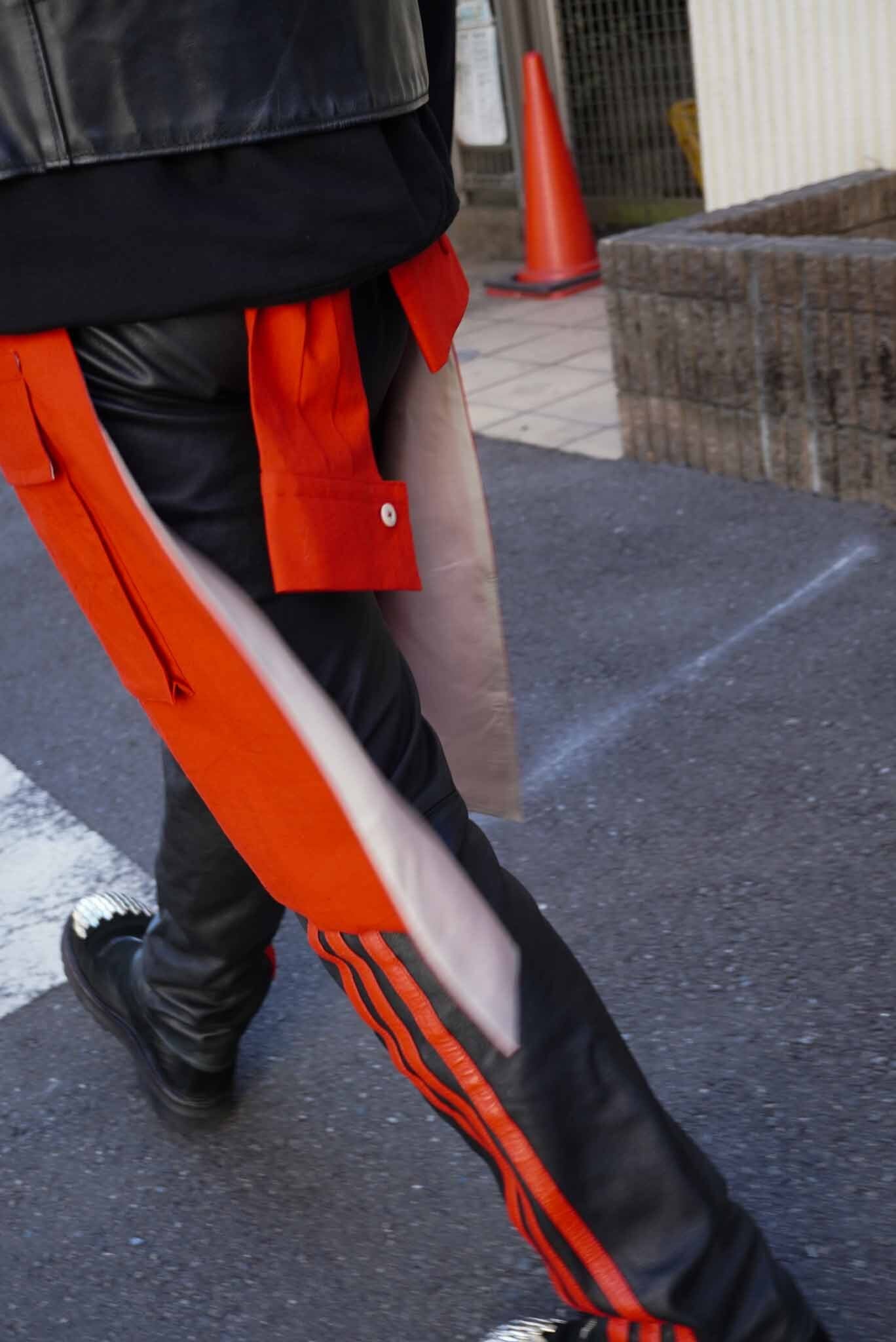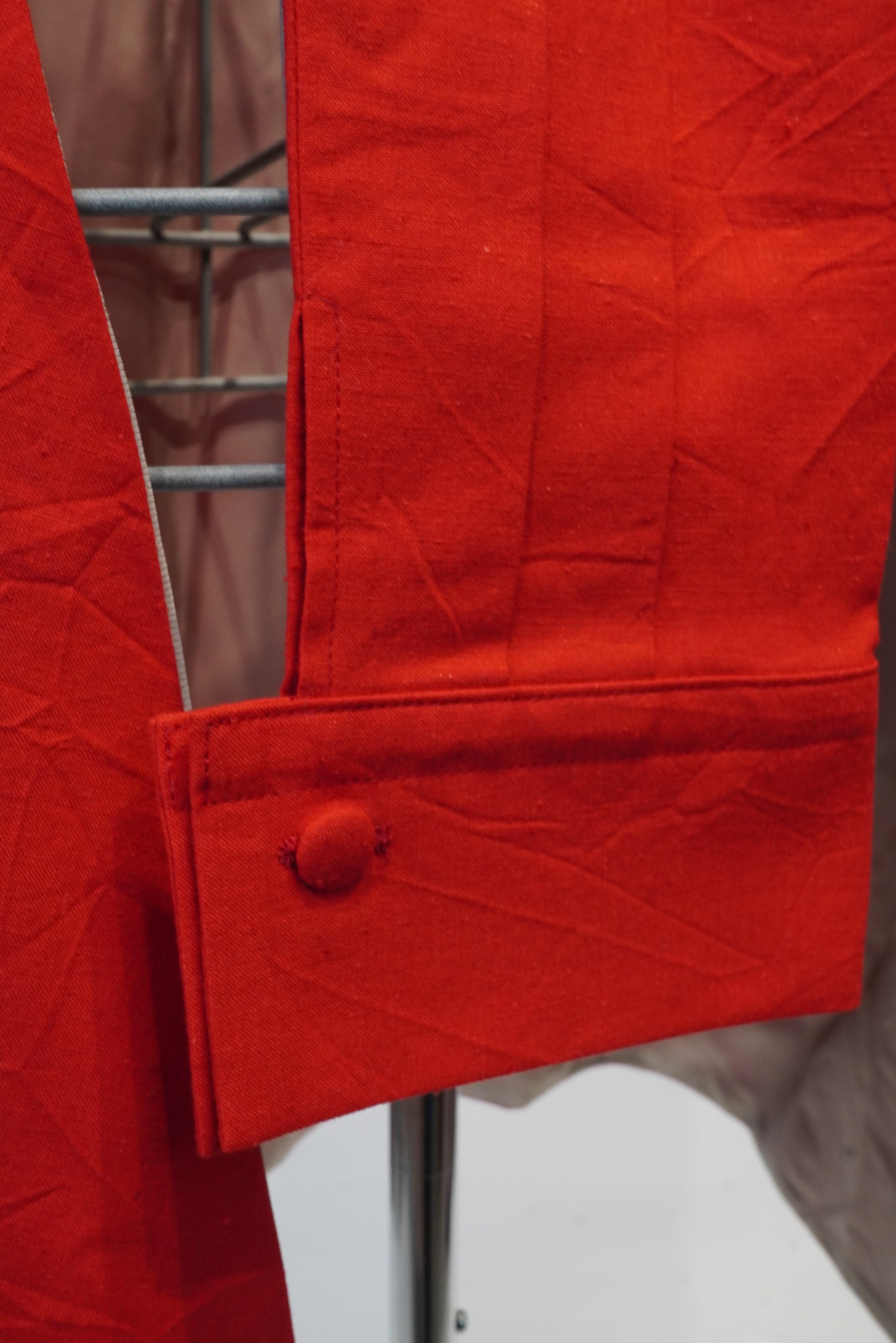コンセプトは"腰に巻く洋服"。タキシードを着る時に巻くカマーバンドの要素をデザインし、更にその留め具としてフックやベルトではなく、シャツ袖でギュッと縛るスタイル。更にシャツを腰に巻いた時のようなデザインにし、両サイドに立体感のあるコートのアウトポケットをようなモノを付ける事で実用性もプラス。A BLUE CONCERTのジャケットやTシャツとも相性良く仕上げました。肩から巻いたりもアレンジできるので、シーズンを気にせずにスタイリングでお使い頂けます。全体的にキュプラ100%の裏地が付いているので冬辺りになると裏返しで腰に巻くスタイリングもオススメです。国内最高峰のジャケット工場の縫製により、裏側も美しくオリジナルスタイルでスタイリングをお楽しみください。レッドはARCD別注カラーとなります。