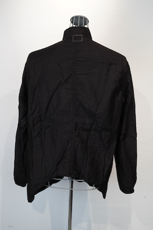 From TENDER CO., item number 450 PLANETARIUM MINNOW BONE. TENDER CO.'s first spin-off collection, PLANETARIUM, is a limited-edition, limited-time collection featuring previously used fabrics dyed black with chemical dyes to represent the universe. This Planetarium series features black-dyed fabric interspersed with colorful vintage buttons, representing planets shining in outer space. The 450 features large front pockets and a curved back hem. The fabric is minnow bone twill, which has an even finer weave than herringbone twill. The soft, gauze-like fabric is comfortable to wear and can be worn both as an outer layer and an inner layer. With TENDER CO.'s unique design and stylish details, this piece will grow into your own vintage piece as you wear it.