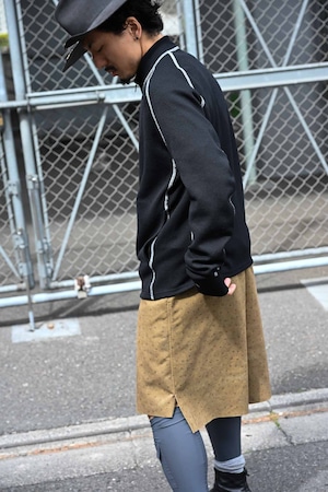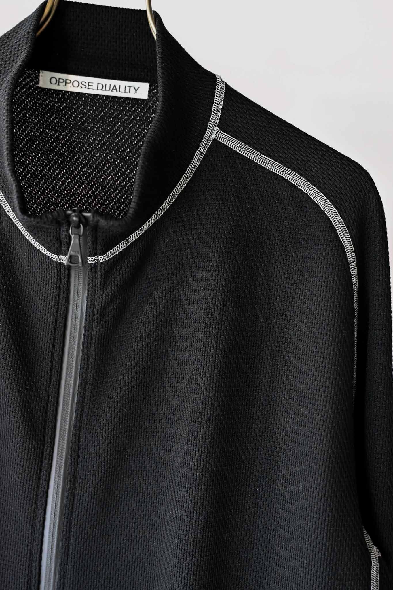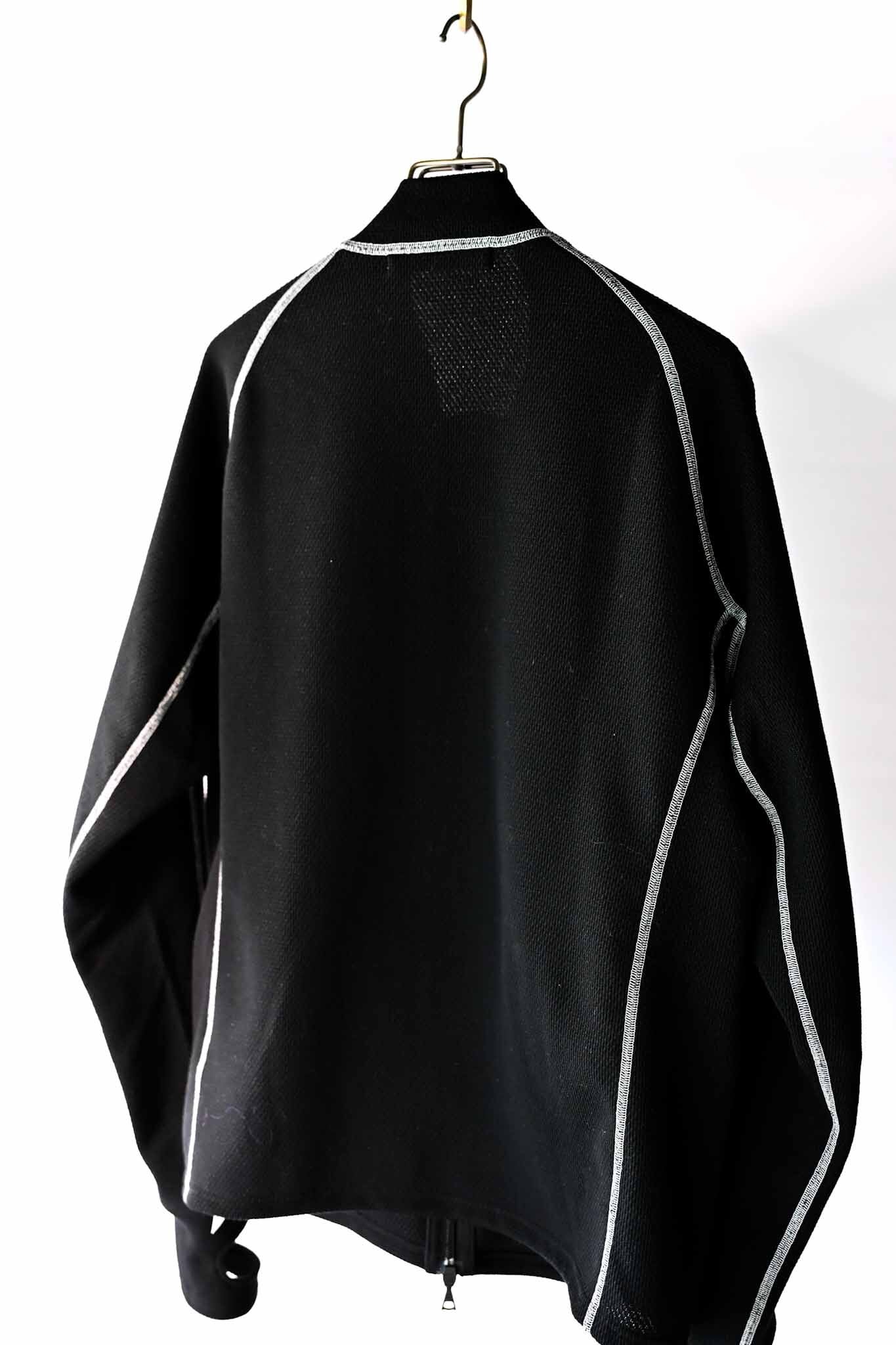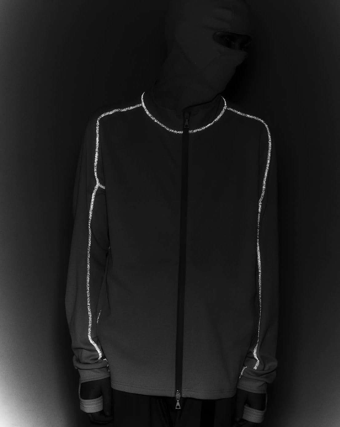 コットン、ポリエステルを交織したサーマル素材。袖口の開きに親指、または時計を挟め込むことができる仕様に。フラットシーマ縫製により着用時のストレスを軽減してくれ、着心地がとても快適です。またシーム部分にリフレクター糸ウィ使用しているので、夜間には光る仕様になっています。フロントは止水ジップ付きです。インナーでの仕様や、春先などはアウターとしても着用いただけます。