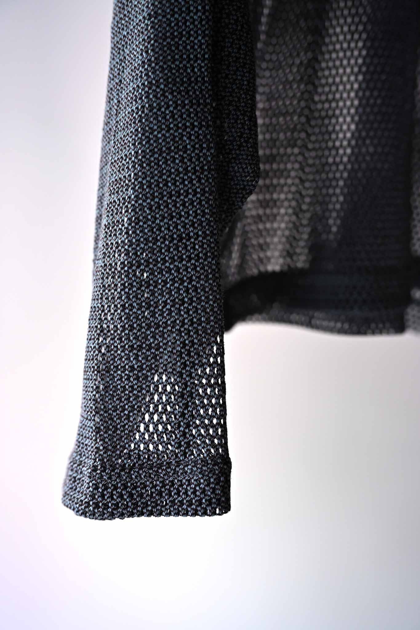 コットン×ポリエステル交織のラッセル生地。フラットシーマ縫製により着心地のストレスを軽減しています。特殊なラグランスリーブ仕様。夏にレイヤードで。