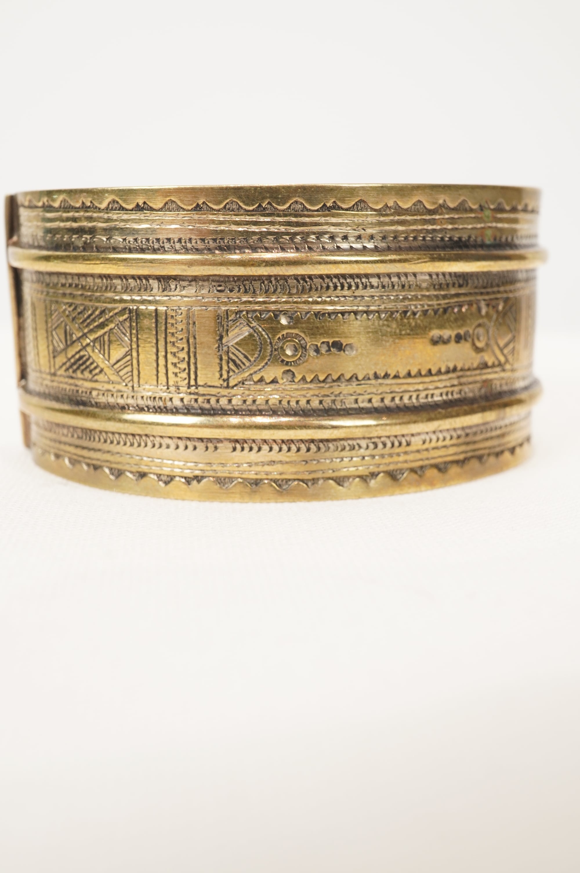 こちらは幅広の大きめサイズのバングル。装飾が美しく細かい手作業で細工されています。ほどよい柔らかさがあり自在にサイズ調整も可能。またトゥアレグ族によって製作されたと証明される刻印がバングル裏に入ります。