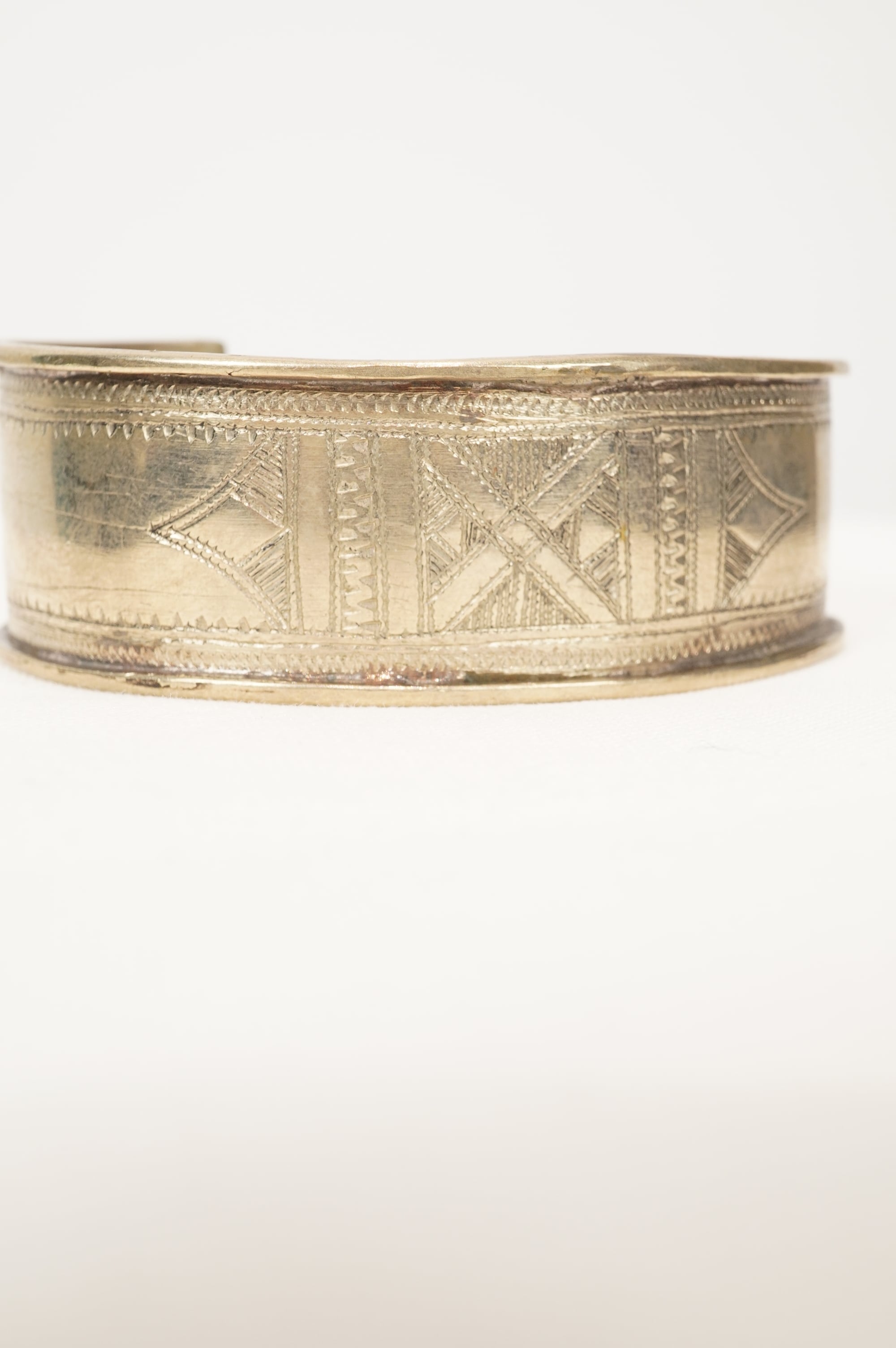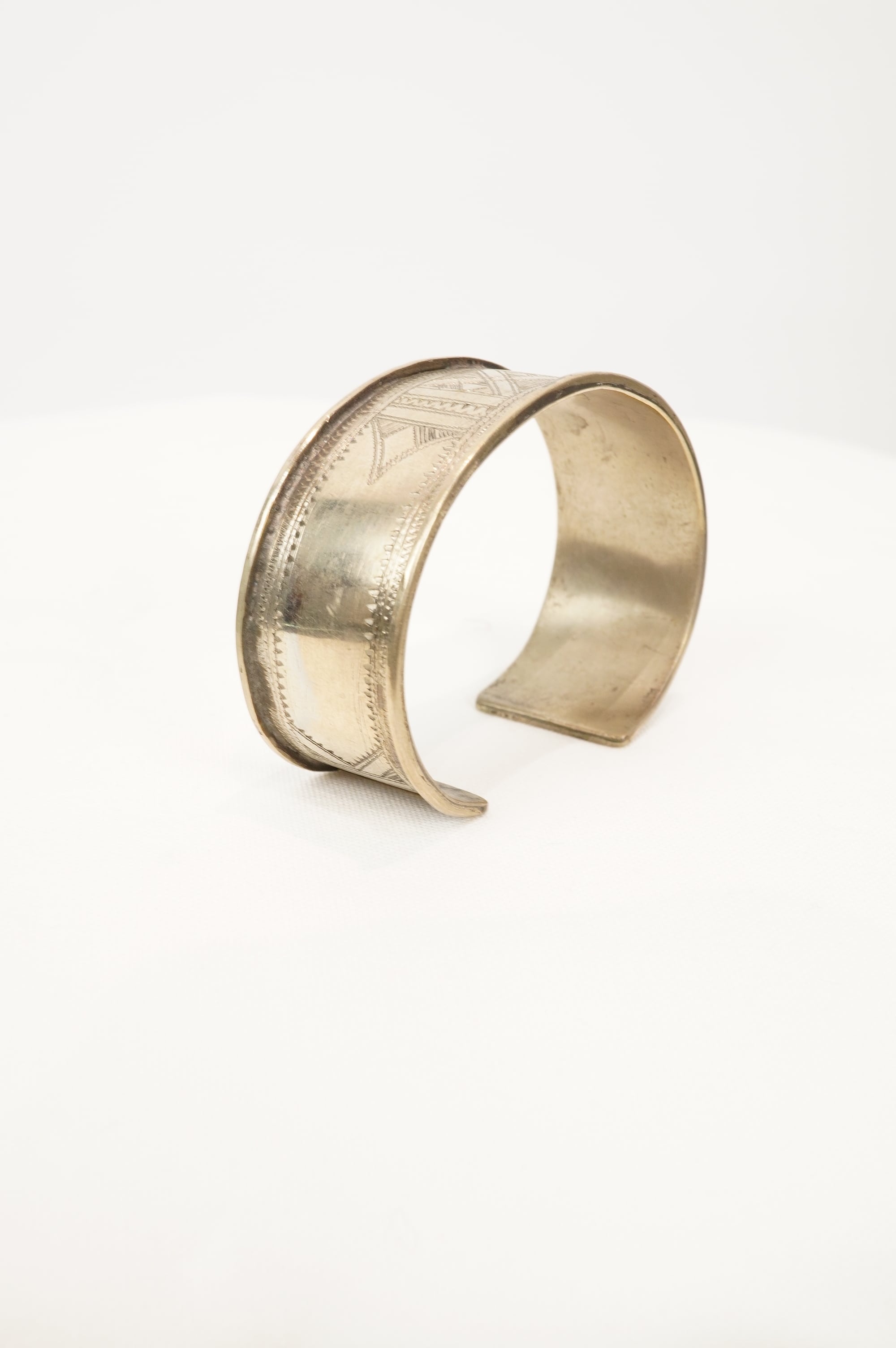 こちらは幅広のミディアムサイズのバングル。装飾が美しく細かい手作業で細工されています。ほどよい柔らかさがあり自在にサイズ調整も可能。またトゥアレグ族によって製作されたと証明される刻印がバングル裏に入ります。