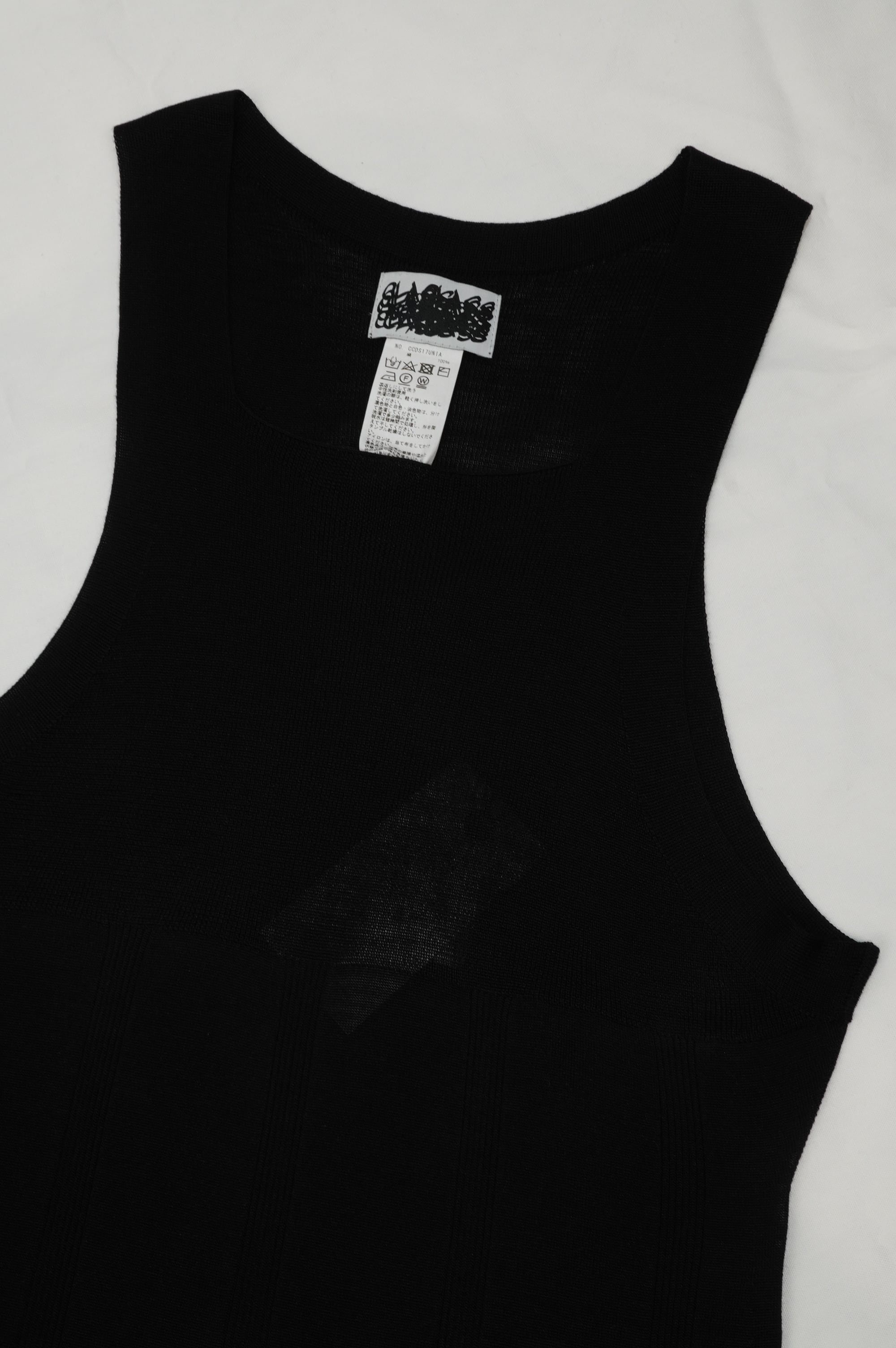 上質なシルクならではの滑らかさがあり、とても気持ちいい素材です。編機はホールガーメントで無縫製仕様。ボディーの編み地の切り変えも特徴的で胴回り全体に施された天竺編みとリブ編のグラデーションがとても美しいデザインとなります。またこちらはウォッシャブル仕様なので、ご家庭の洗濯機で洗うことも可能です。コットンのタンクトップとは違うクオリティーの高さを体感してみてください。