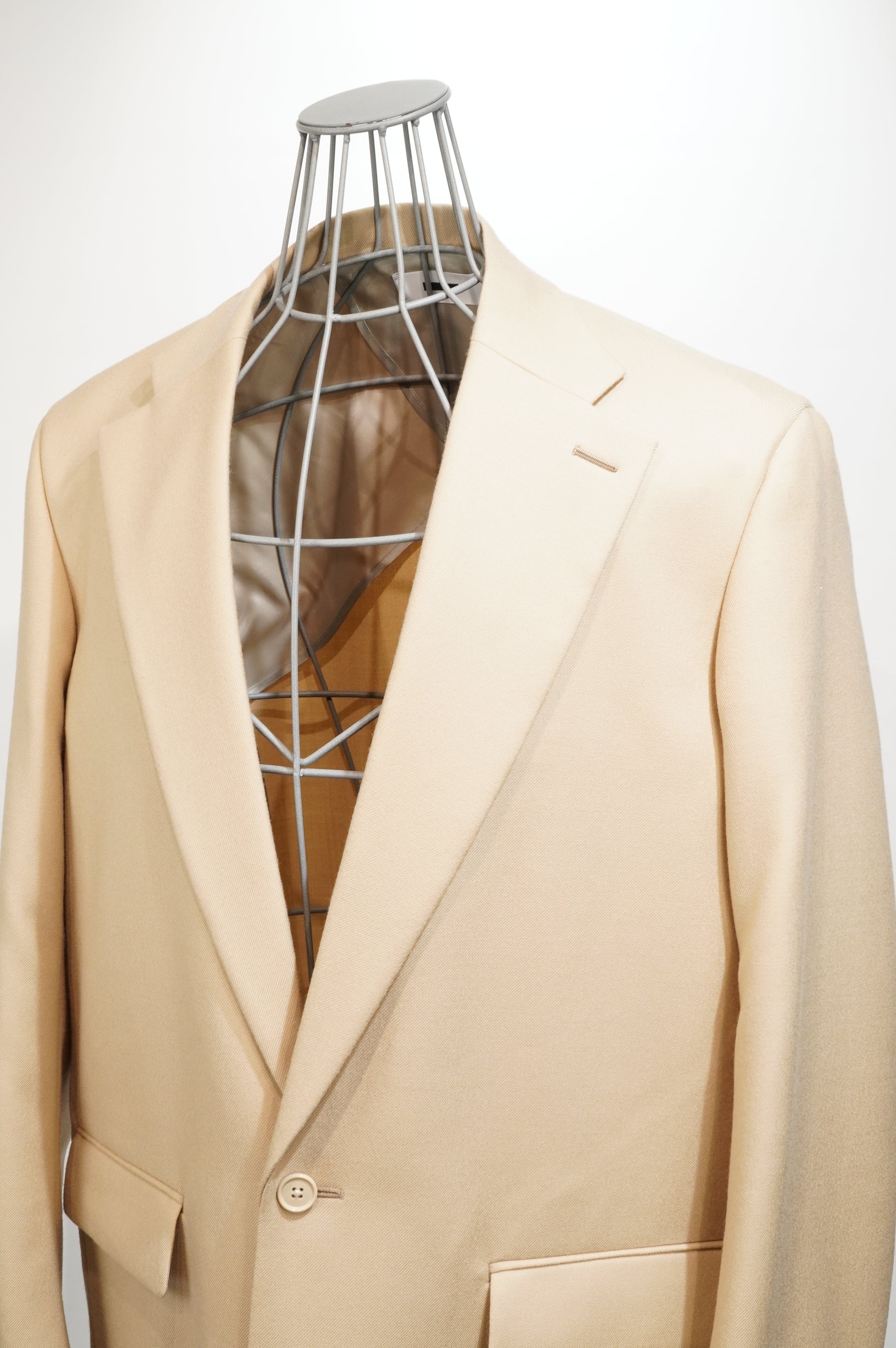 イギリス滞在中はVivienne WestwoodとMalcolm McLarenの息子Joe Corre率いる『A Child Of The Jago』にて縫子、アシスタントデザイナーとしてコレクションの製作を担当した経験の持ち主。2013年、英国にて自身のブランド『REVERBERATE』を始動し、2015年の帰国後は活動拠点を日本に変更して活動の幅を広げました。コンセプトを持たないクリエーションは日本と英国で培ったヴィンテージやクラシックに対しての幅広い知見と、既成概念に囚われない手書きの線によって生み出される独創的なパターンメイキング、VivienneやJoeから受け継がれる挑戦的なプレゼンテーションを経て、唯一無二のコレクションを生み出しています。こちらは柔らかなウールサージ素材を使用したブランドのシグネチャージャケット。ハーフコート感覚で着用することができるテーラードジャケットで着こなしの幅が広がります。同素材のパンツと組み合わせることでセットアップで着用可能です。