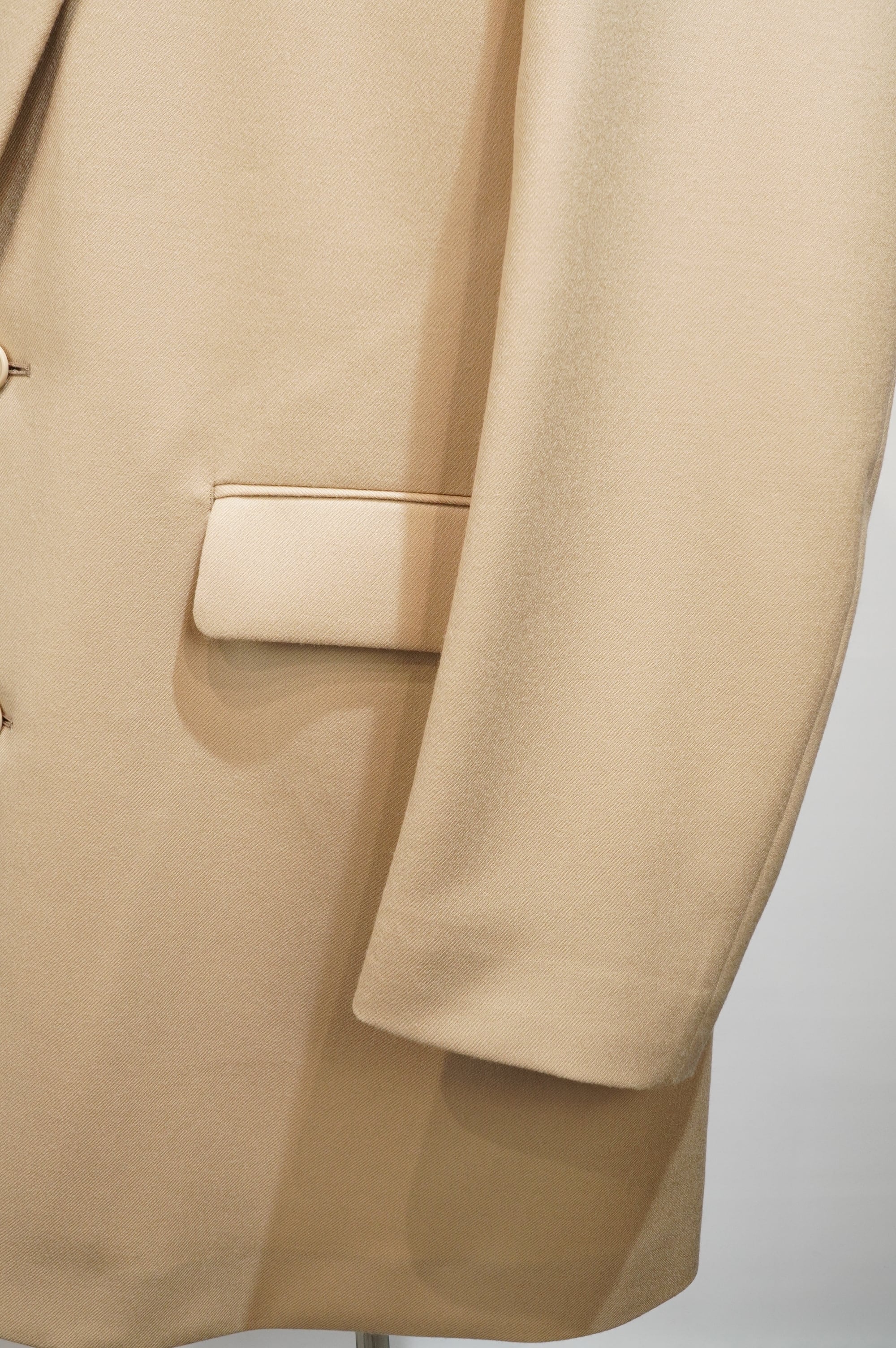 While in the UK, she worked as a seamstress and assistant designer for ``A Child Of The Jago,'' led by Vivienne Westwood and Malcolm McLaren's son Joe Corre, where she was in charge of creating collections. In 2013, he started his own brand "REVERBERATE" in the UK, and after returning to Japan in 2015, he changed his base of activities to Japan and expanded the scope of his activities. Creations without a concept are based on a wide range of vintage and classic knowledge cultivated in Japan and the UK, original pattern making created by hand-drawn lines that are not bound by preconceptions, and a challenging presentation inherited from Vivienne and Joe. Through this process, we have created a one-of-a-kind collection. This is the brand's signature jacket made of soft wool serge material. This tailored jacket can be worn like a half-coat, expanding the range of your outfits. You can wear it as a set by combining it with pants made of the same material.