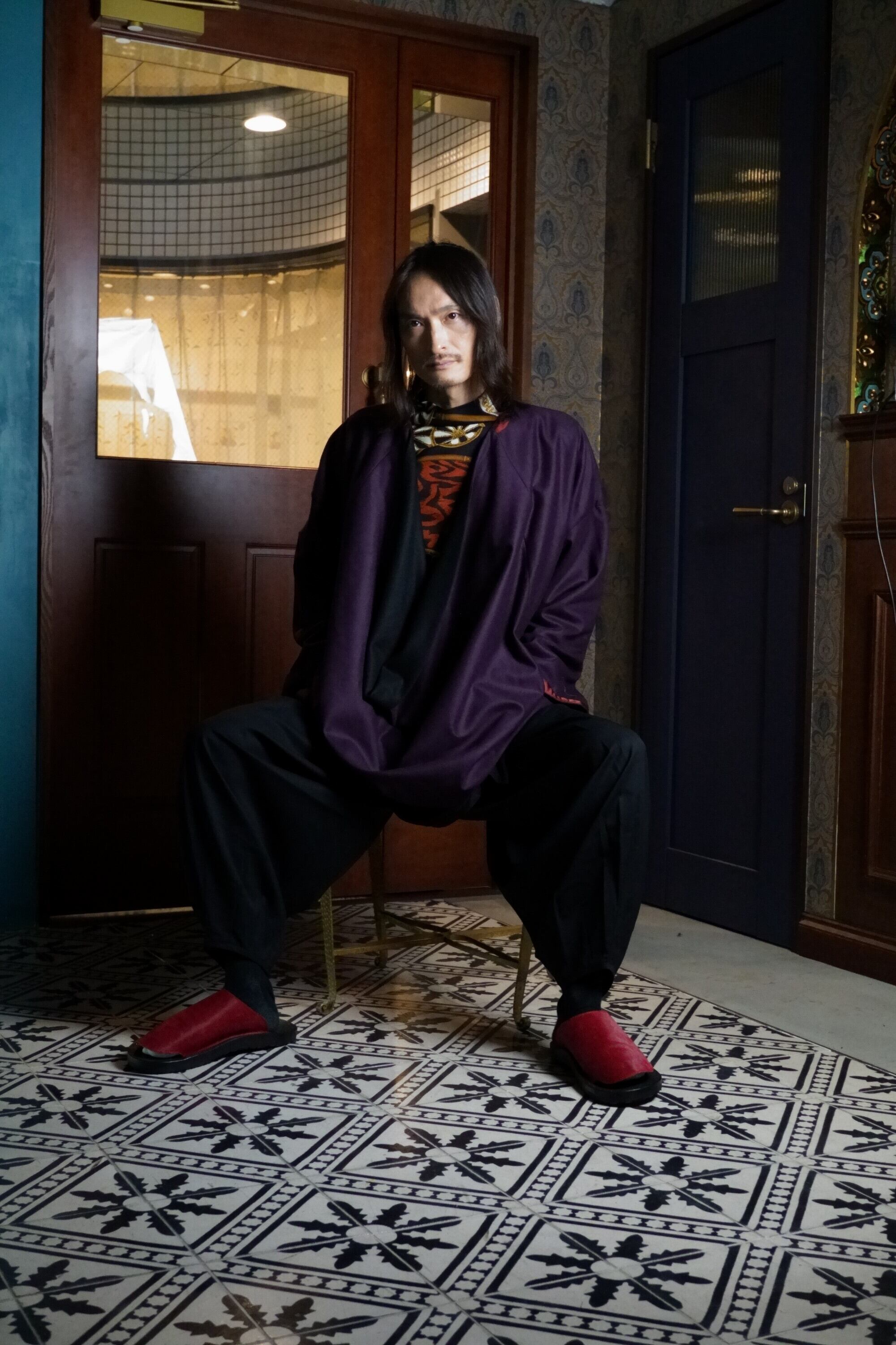 The theme for 24AW was inspired by Kabuki actor Tamasaburo Bando. The inspiration came from Mr. Matsushita's attraction to the color combination of the kimono worn by the Kabuki actor Tamasaburo Bando (black habaori and bordeaux hakama). From there, he decided to use mostly black and bordeaux as the colors for the collection, creating a simple yet eccentric collection piece that is unique to NOBNAGAParis.
