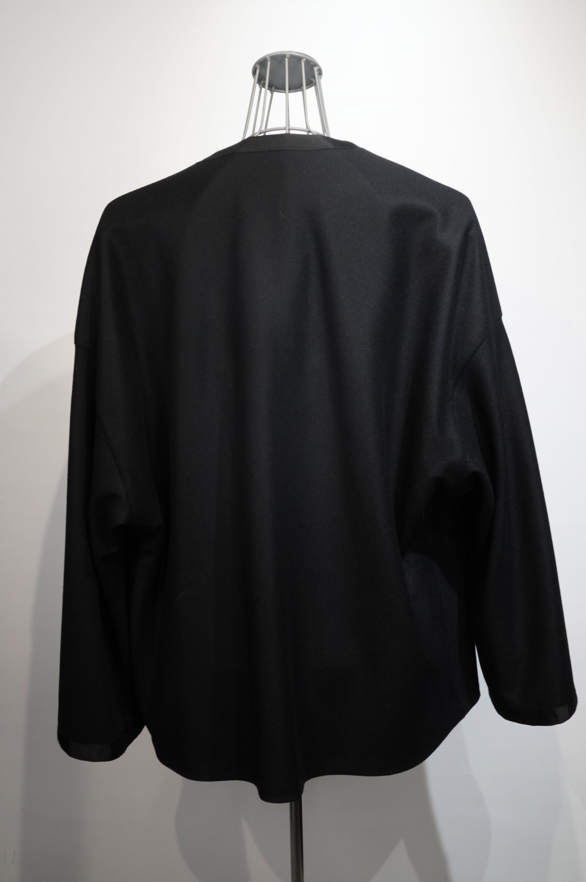 首元が特徴的なプルオーバー。大きく開いたネックはレイヤードを楽しむアイテム。リバーシブル仕様で表はブラック、裏がボルドーです。素材にはウールカシミアを使用。サイドにはポケット、裾や袖には艶のあるグログランテープ。サイズはフリーサイズで、ユニセックスのアイテムとなります。