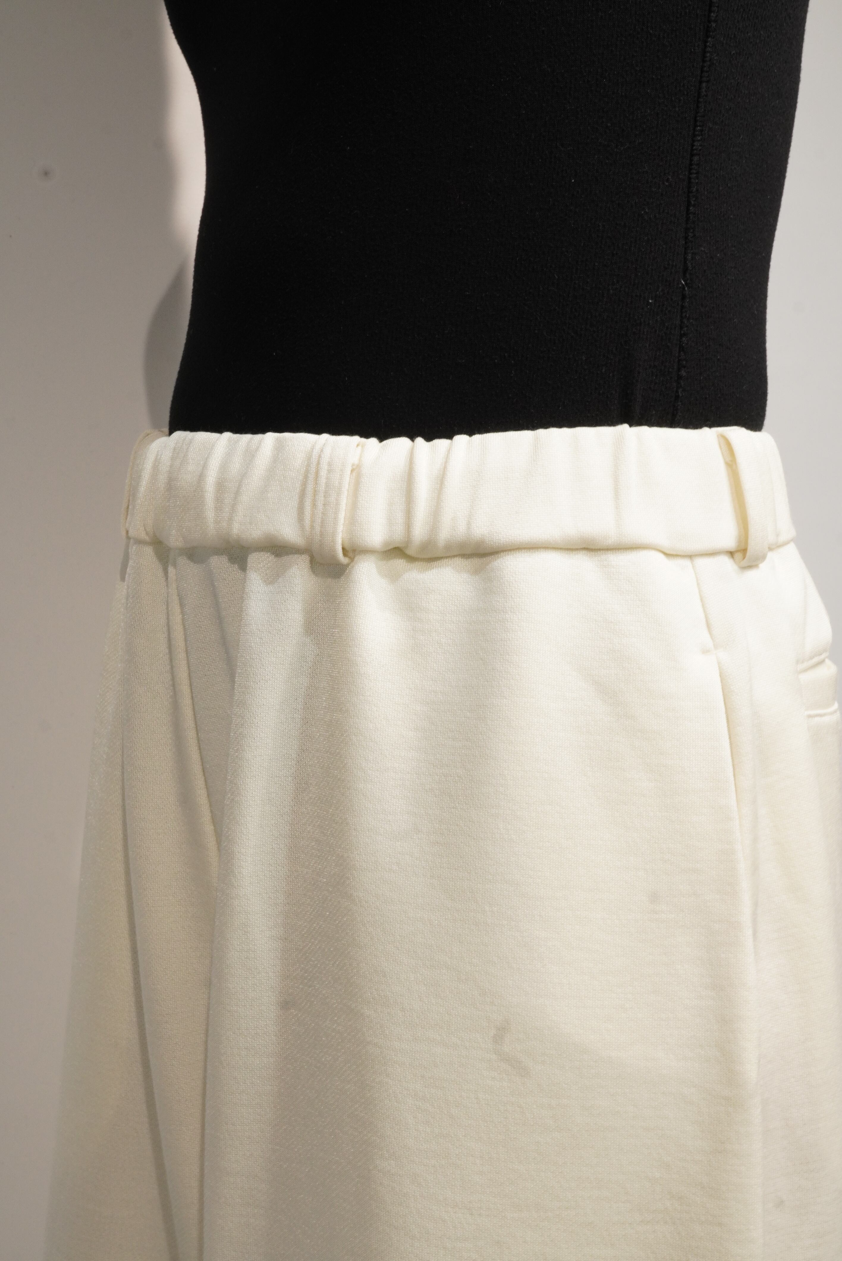 毎シーズン型紙を変えて提案するREVERBERATEのワイドなシルエットのトラックパンツ。ベルトの内側には紐がありサイズの調節が可能です。。ベルトループも付いている為、ベルトをつけて着用も可能。生地の表はジャージだが、裏にはコットンが出る編み地になっています。どんなスタイルにも合う汎用性の高いパンツです。